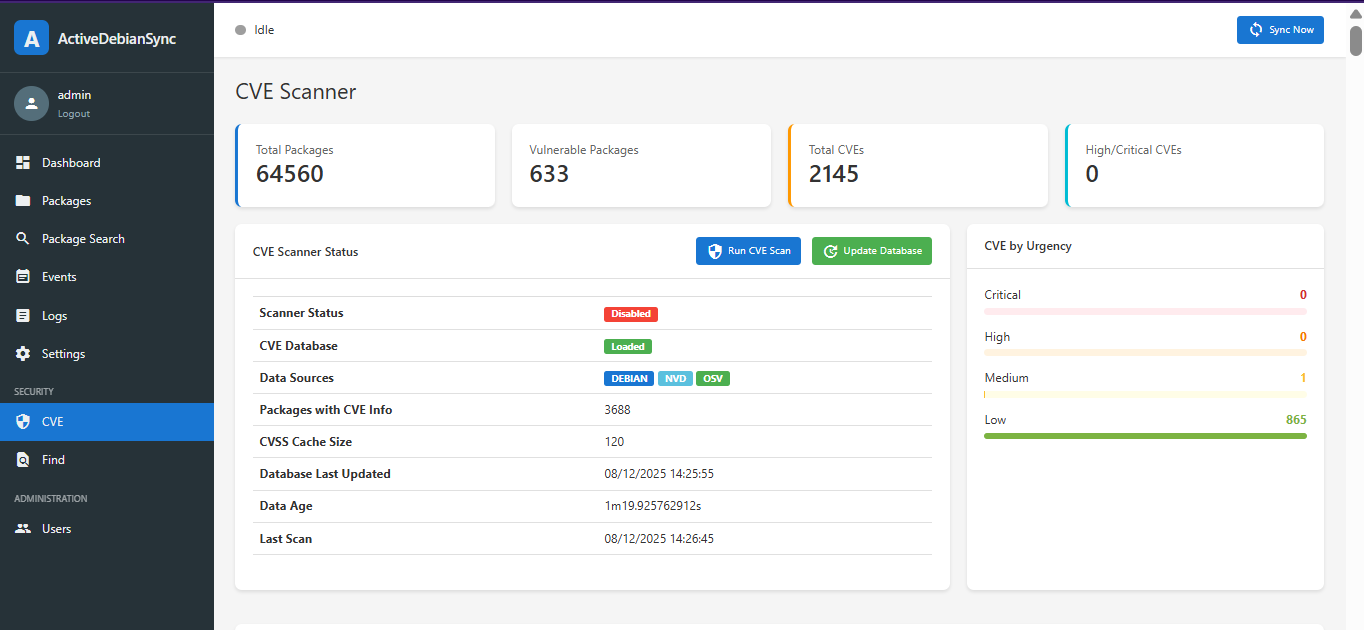 Download/refresh the CVE database from Debian Security Tracker:./activedebiansync cve update -config /path/to/config.json