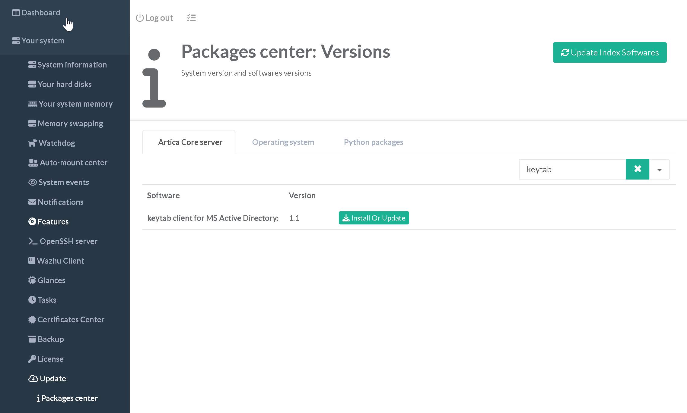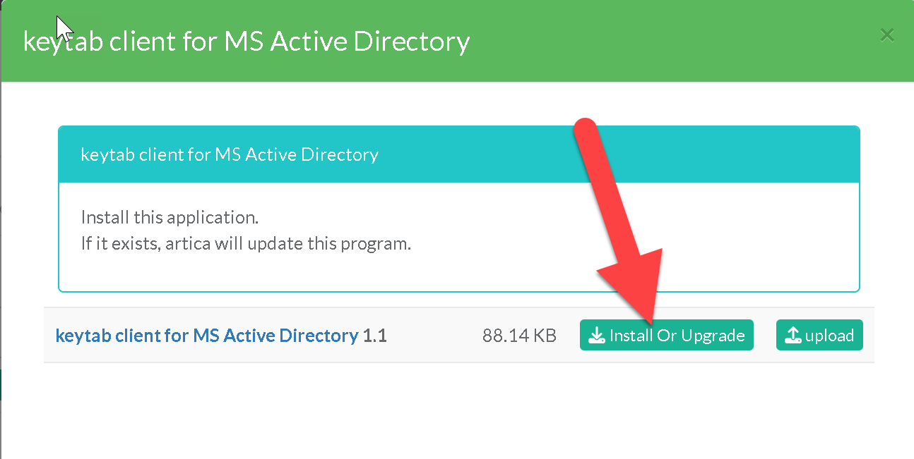 The version Artica v4.40 Service Pack 52 allows you to install the keytab client for MS Active Directory in order to activate the Active Directory feature