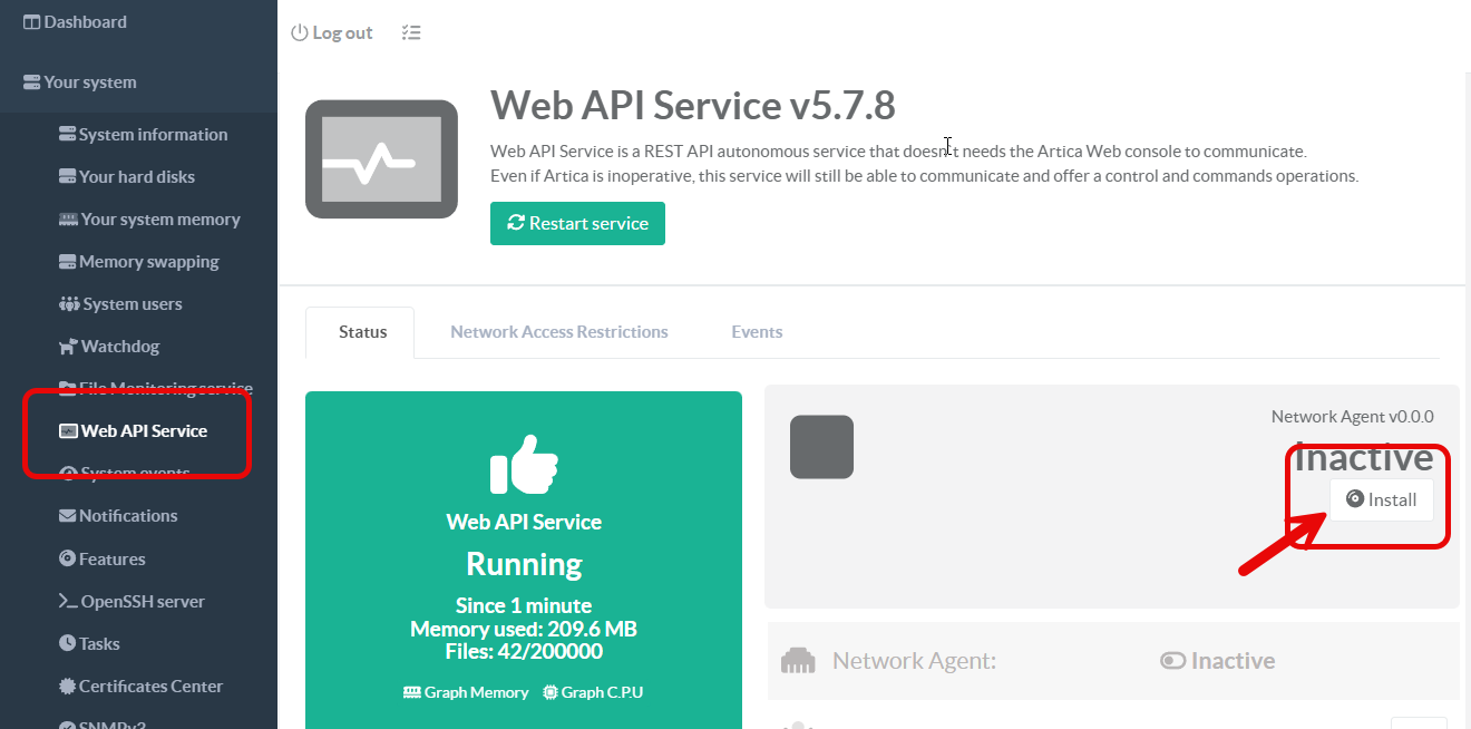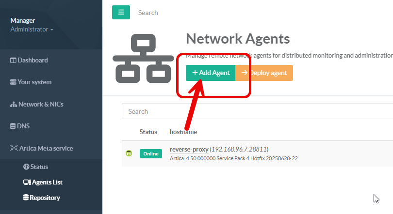 You must have at least version 4.50 Service Pack 5 Hotfix 20260102-16. If you meet this minimum version requirement, you can control the communication agent directly from the Artica Web interface.