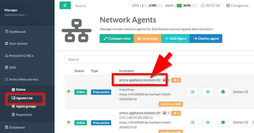 On the Agents List table, select the Agent you need to deny from updates.