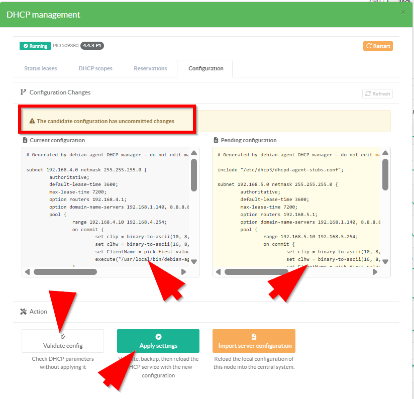 Once completed, the configuration engine will indicate that some parameters have been modified and must be applied.