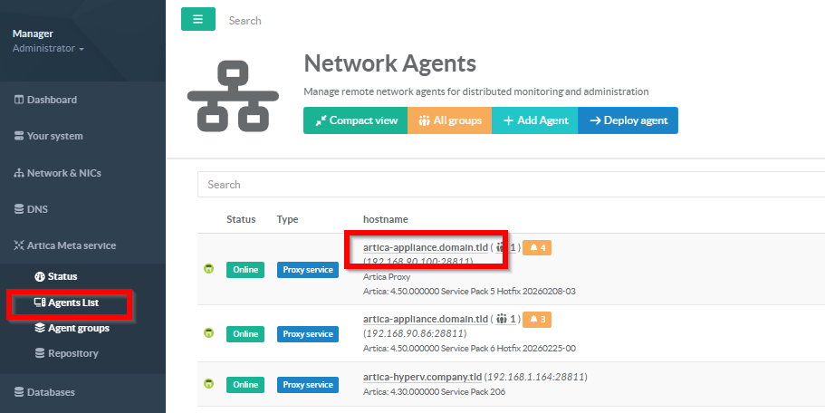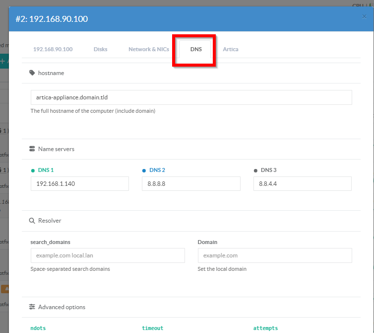 With Artica Meta, you can centrally manage and modify the DNS configuration of your managed nodes — either individually on a per-node basis or collectively through node groups for consistent, cluster-wide settings.
