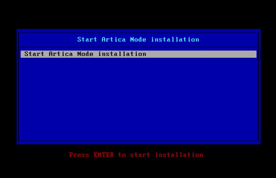 - Type Enter key at the “Start Artica Node installation”
