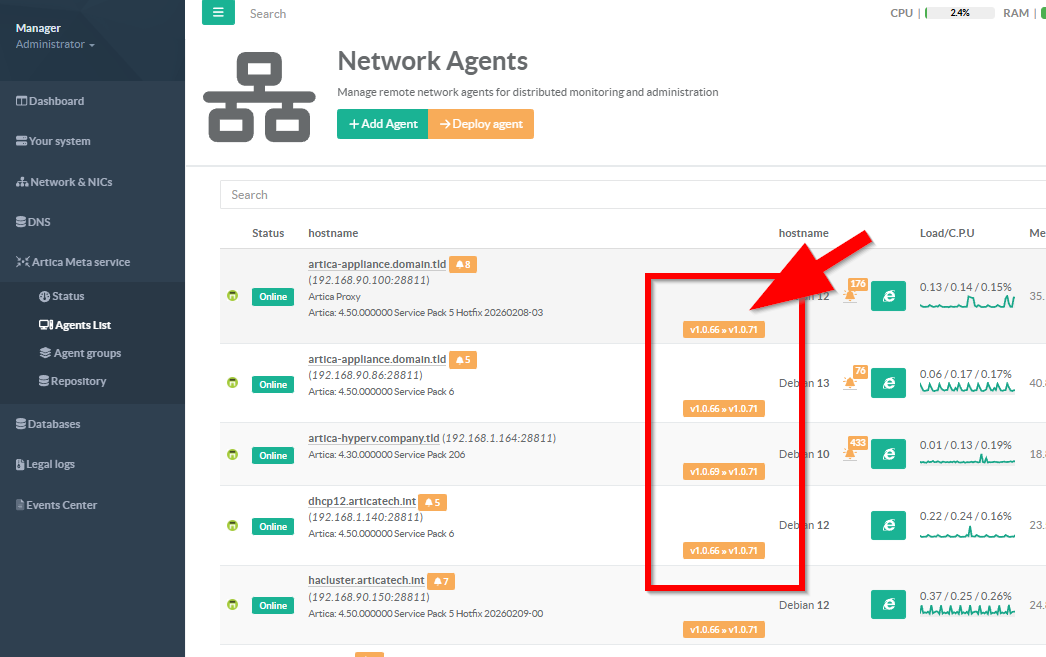 As a result, updating Artica on your Meta server may make a newer version of the agent available.