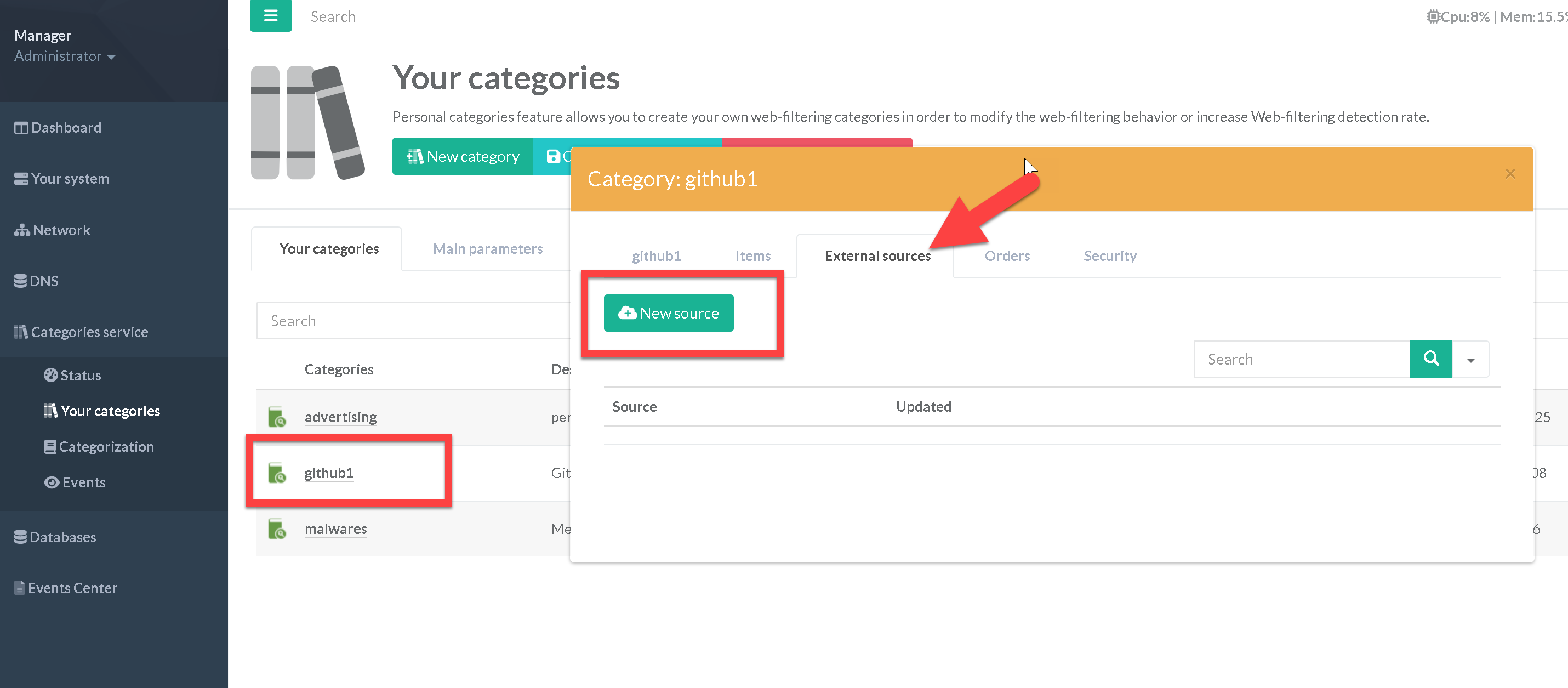 Artica empowers administrators to populate and update web-filtering categories by integrating custom sources stored on the Internet A category can be filled via an external source such as HTTP/HTTPs. You can add several sources address for one category.