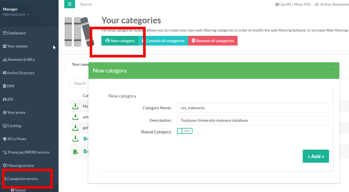 Your Categories” click on New Category and name it ( use a different name than Artica officials categories )