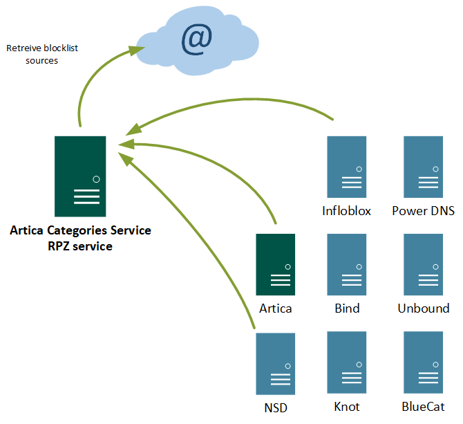 Artica’s RPZ (Response Policy Zone) service unifies DNS-based security across BIND9, NSD, PowerDNS, Infoblox, Knot, and other DNS servers.