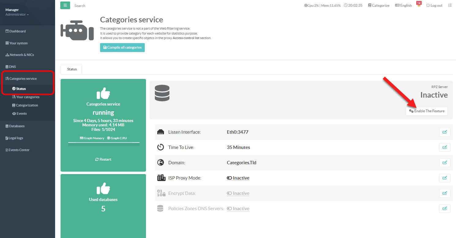 Categories service > Status