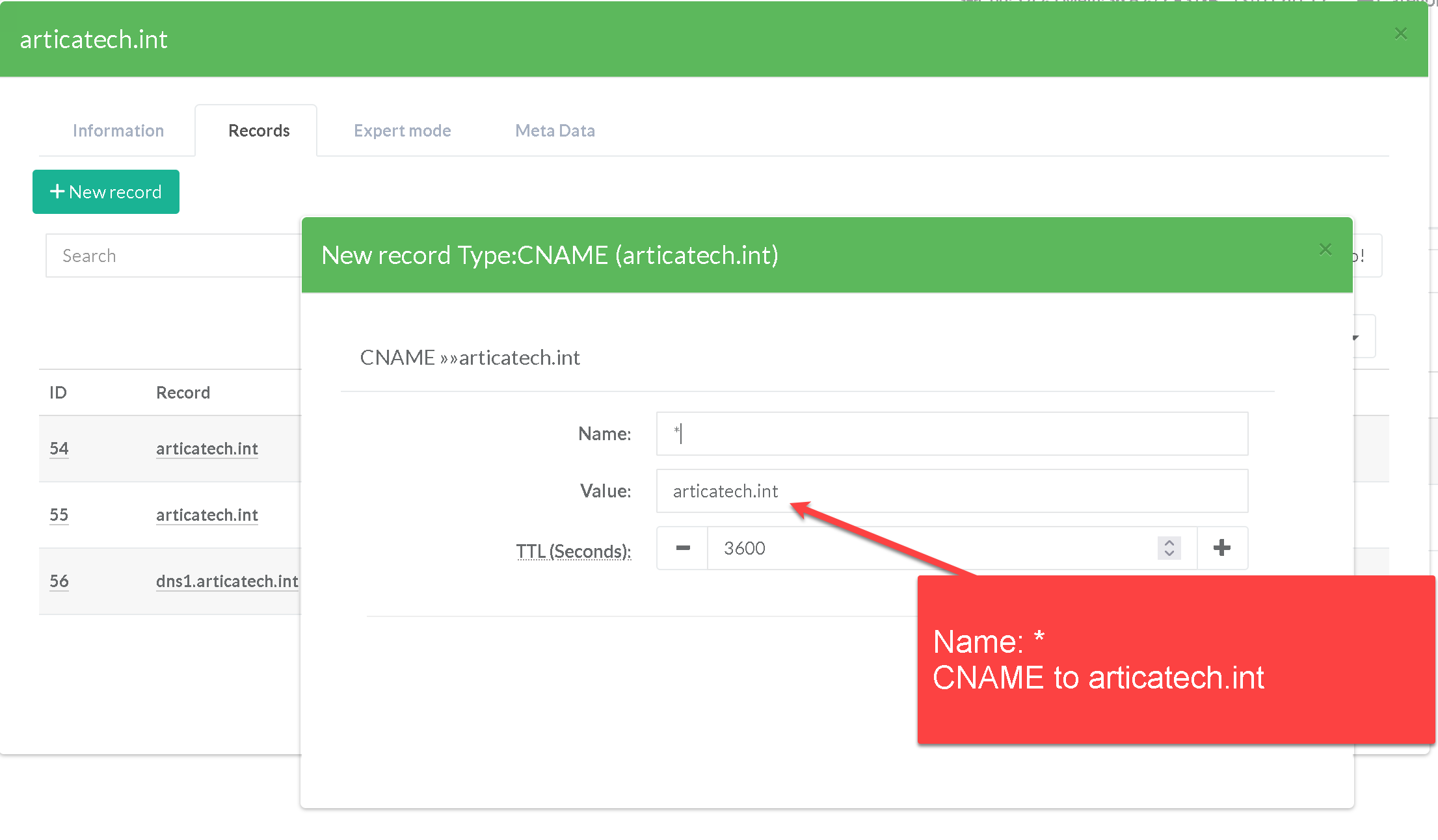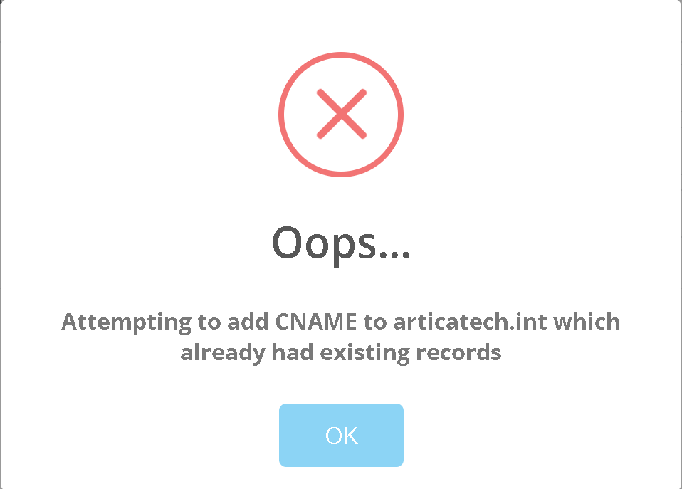 When you try to create a CNAME of the main domain ( by using the “star” ) as Name: