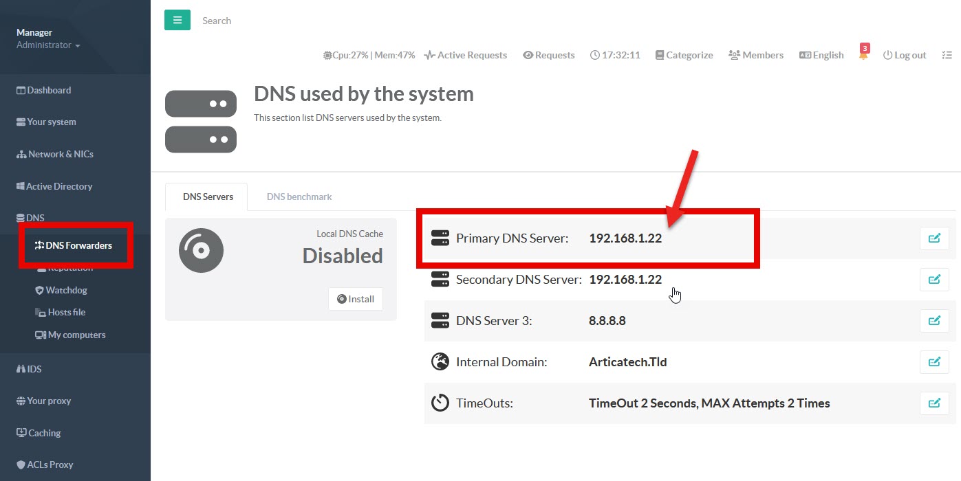 All services: DNS local cache, DNS Firewall, Web proxy will be automatically reconfigured to use your settings.