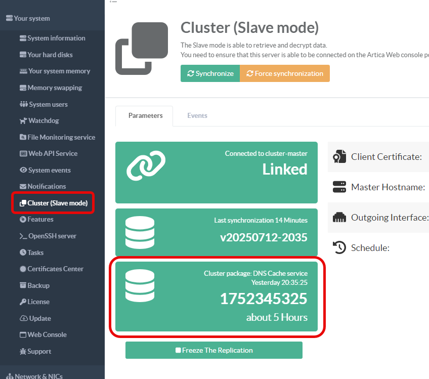 If a new configuration is available, they automatically download and apply it to mirror the master server, ensuring consistent and synchronized DNS setups across all nodes.This feature was enhanced starting Artica v4.50 Service Pack 5 or Artica v4.50 Service Pack 4 Hotfix 20250713-01