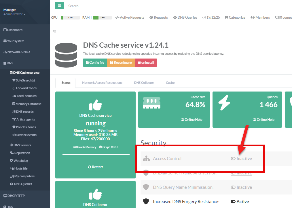 This feature restricts the DNS server to respond only to networks you’ve marked as “Trusted” in Artica’s Network section.