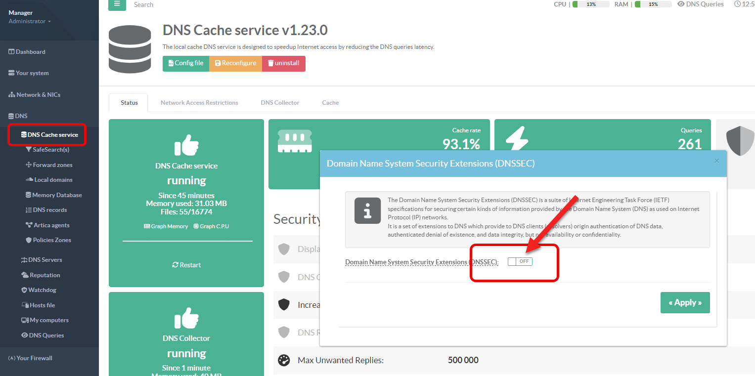 Turn on the Domain Name System Security Extensions (DNSSEC) checkbox