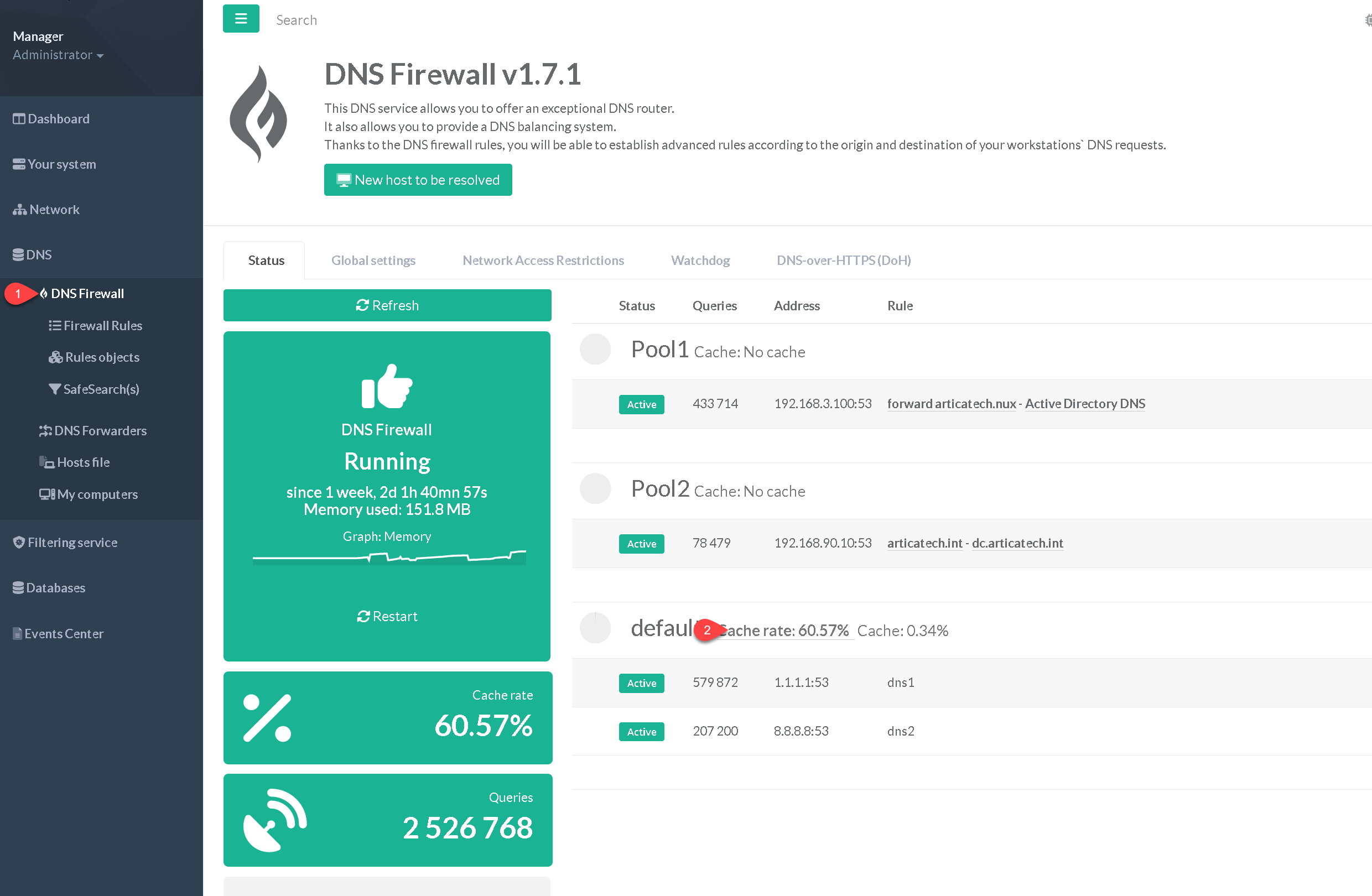 In the left menu, Click on “DNS Firewall” .
