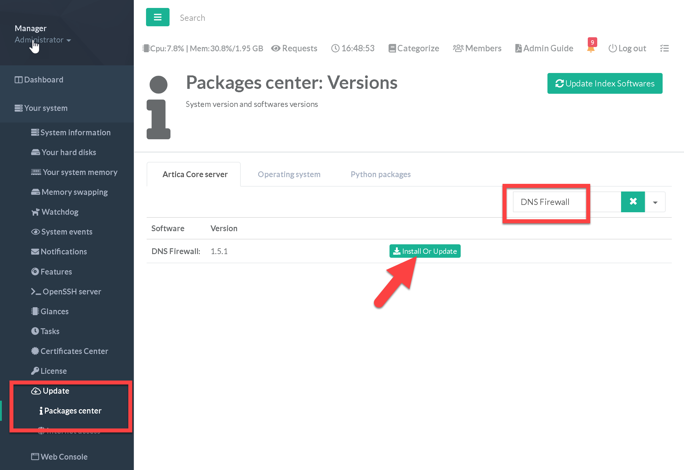 Note: This procedure is available with Artica v4.40 or 4.30 unstable Service Pack version 667 ( rebuilded in Service Pack 883 )