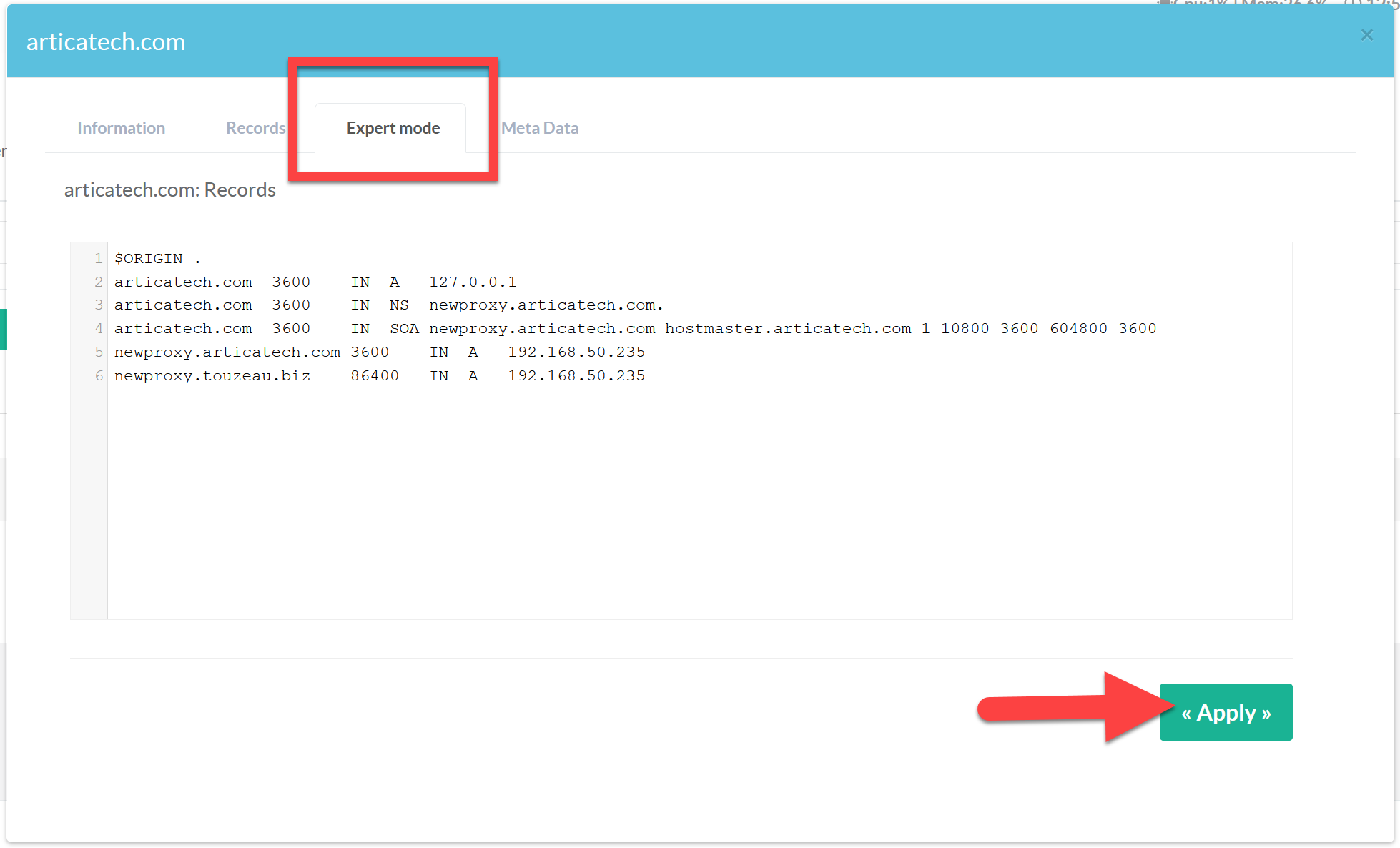 This mode also allows you to import or export massively domain records by using copy/paste method This feature is available with Artica V4.30 Service Pack 589