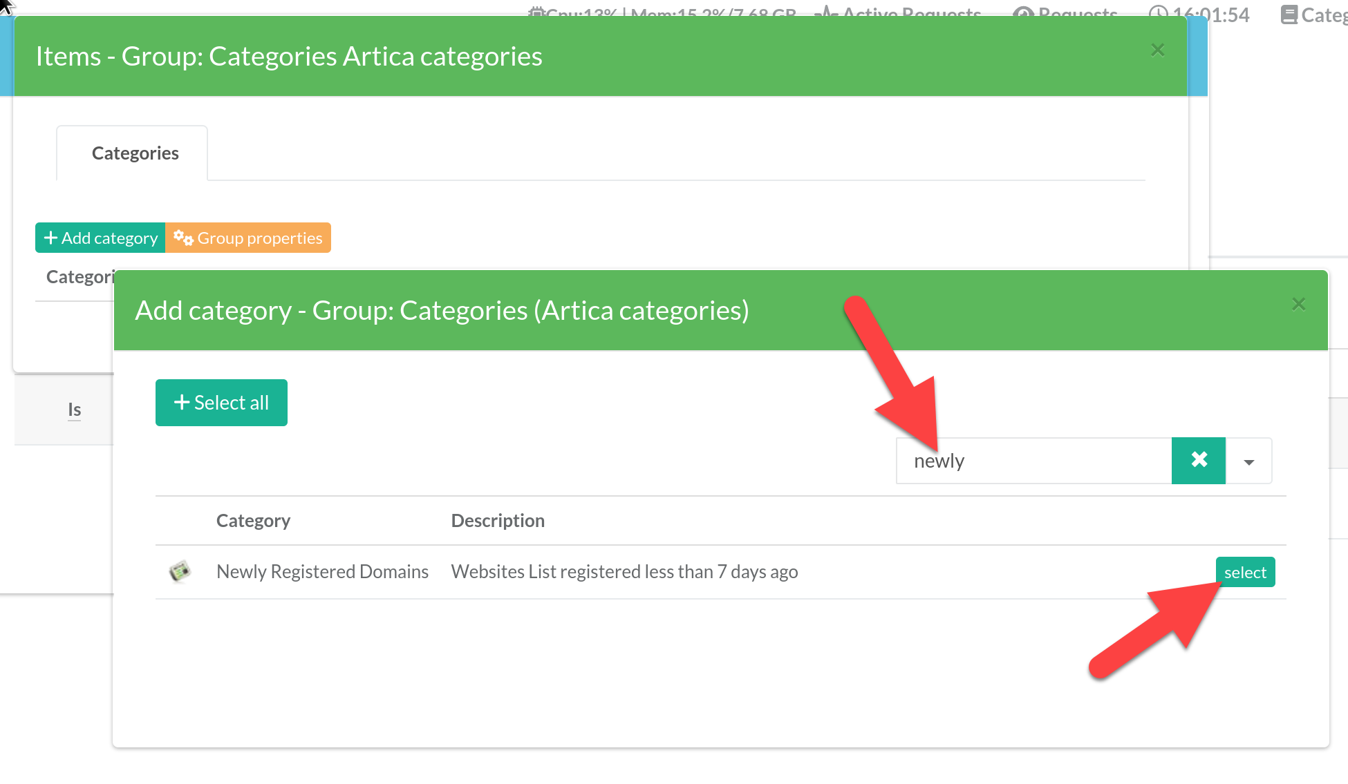 The widget will be turned to green and you will see the number of records stored in the The Newly Registered Domains category database. This Database is updated every 12 hours.