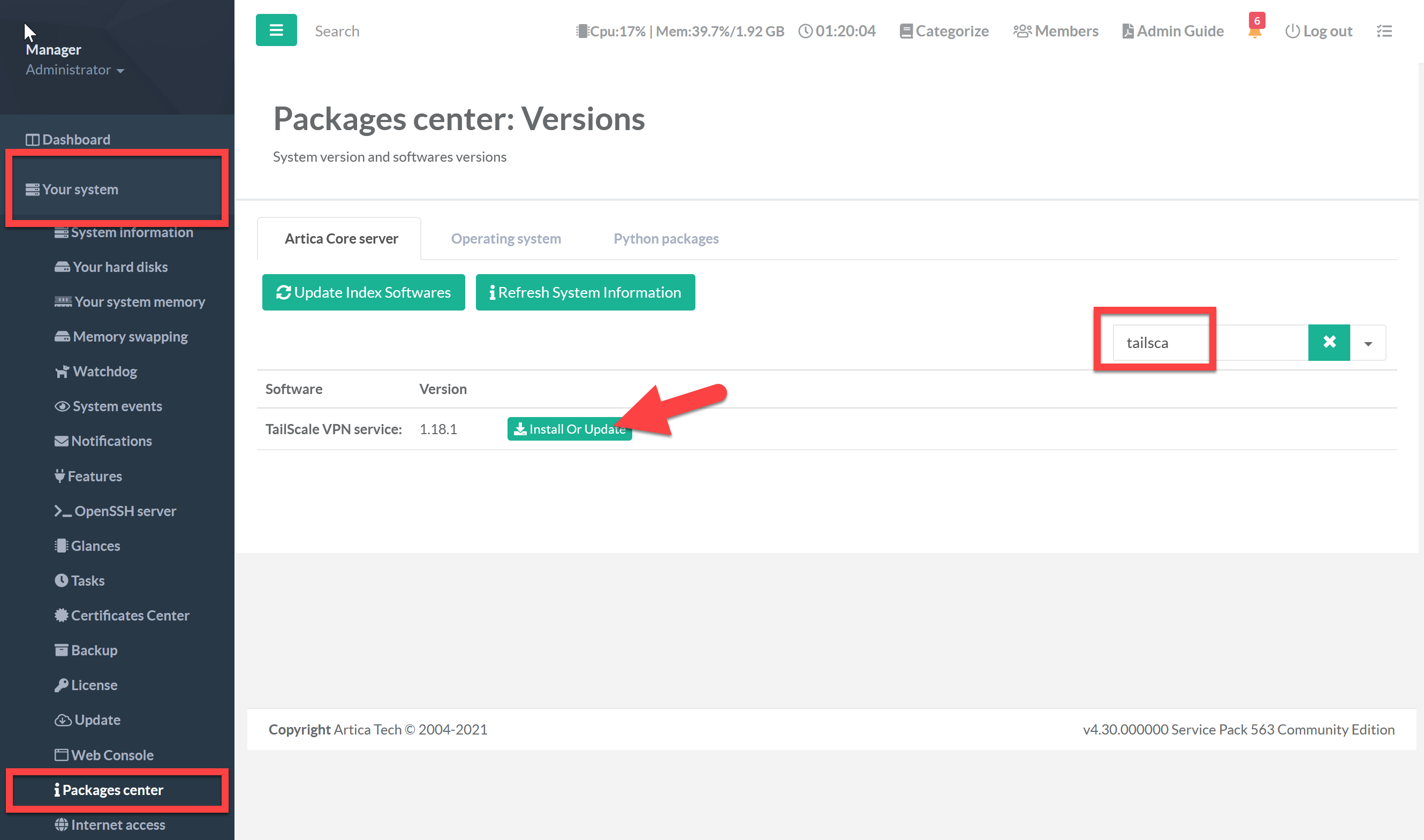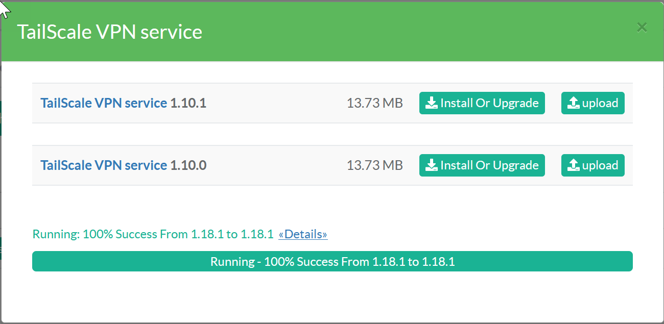 Artica provides the update of the TailScale Service directly through the official update of the vendor. This operation uses the update method via the operating system packages management method. It is available with Artica 4.30 Service Pack 579