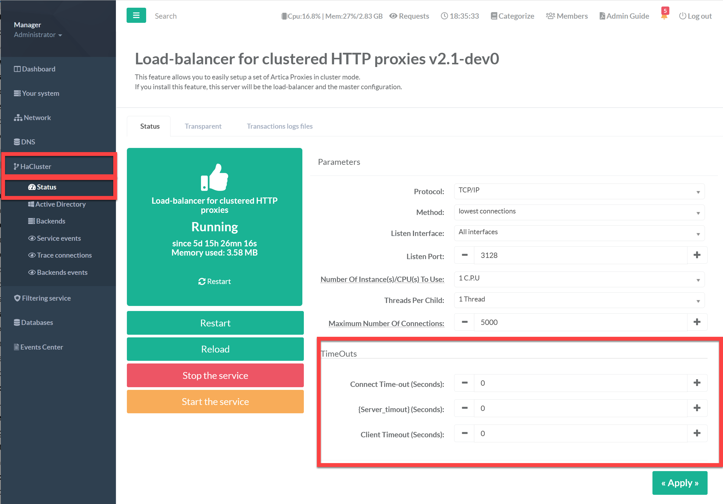 The Connect Time-Out setting configures the time that the Loab-balancer will wait for a TCP connection to a Proxy server to be established.