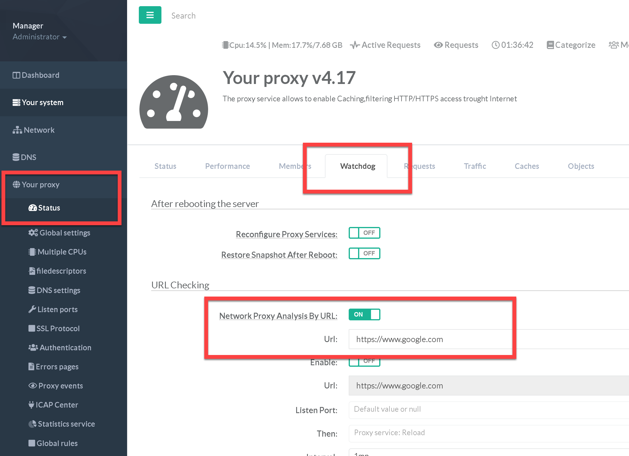 This method allows you to confirm if the access to the indicated site comes from a network problem external to your server or from a problem related to the configuration of the proxy service.