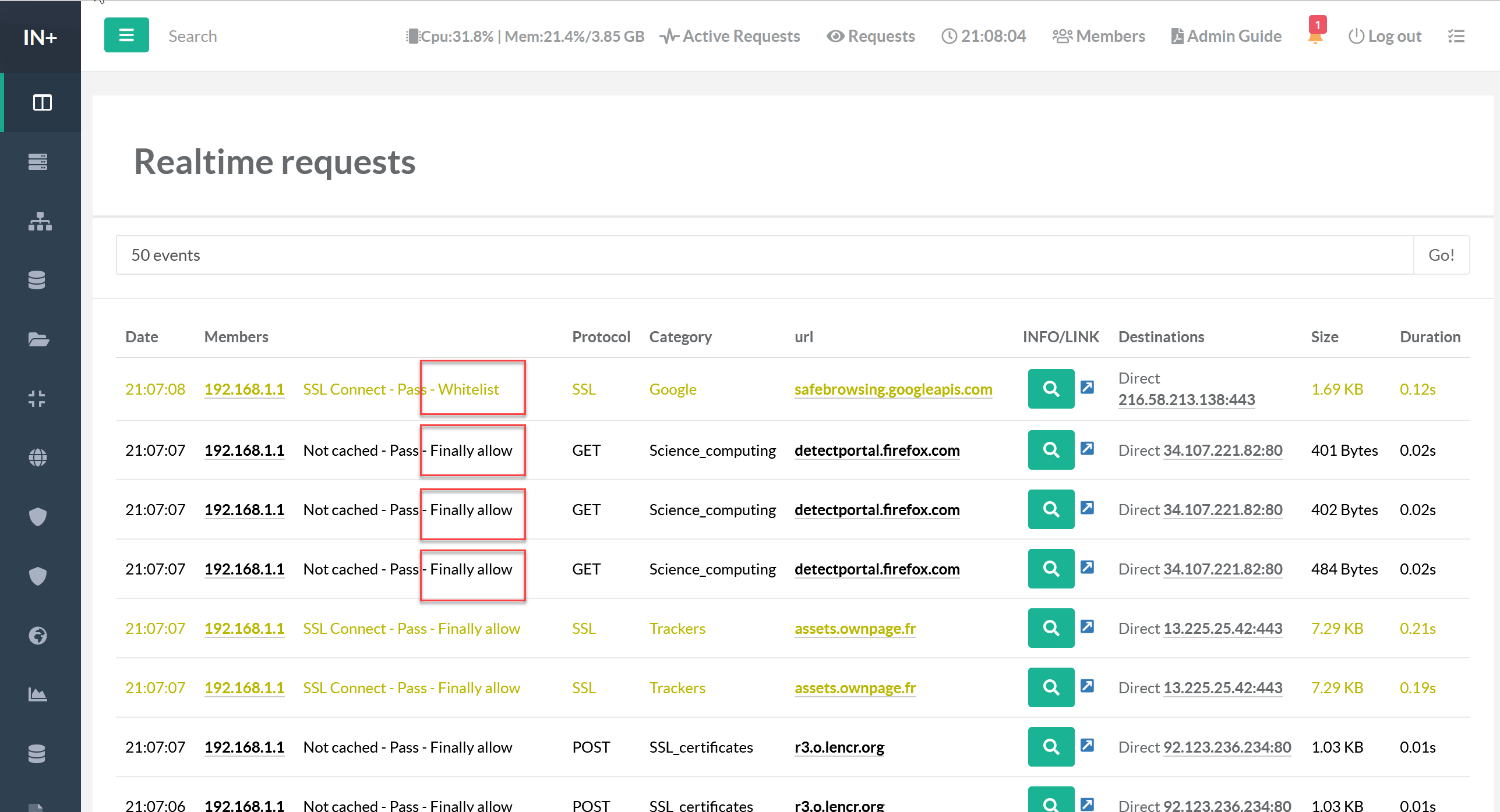 If you upgrade to Proxy version 5.x and Artica Service Pack 273 and recompile your proxy parameters, you will automatically rules inside the relatime event accesses.