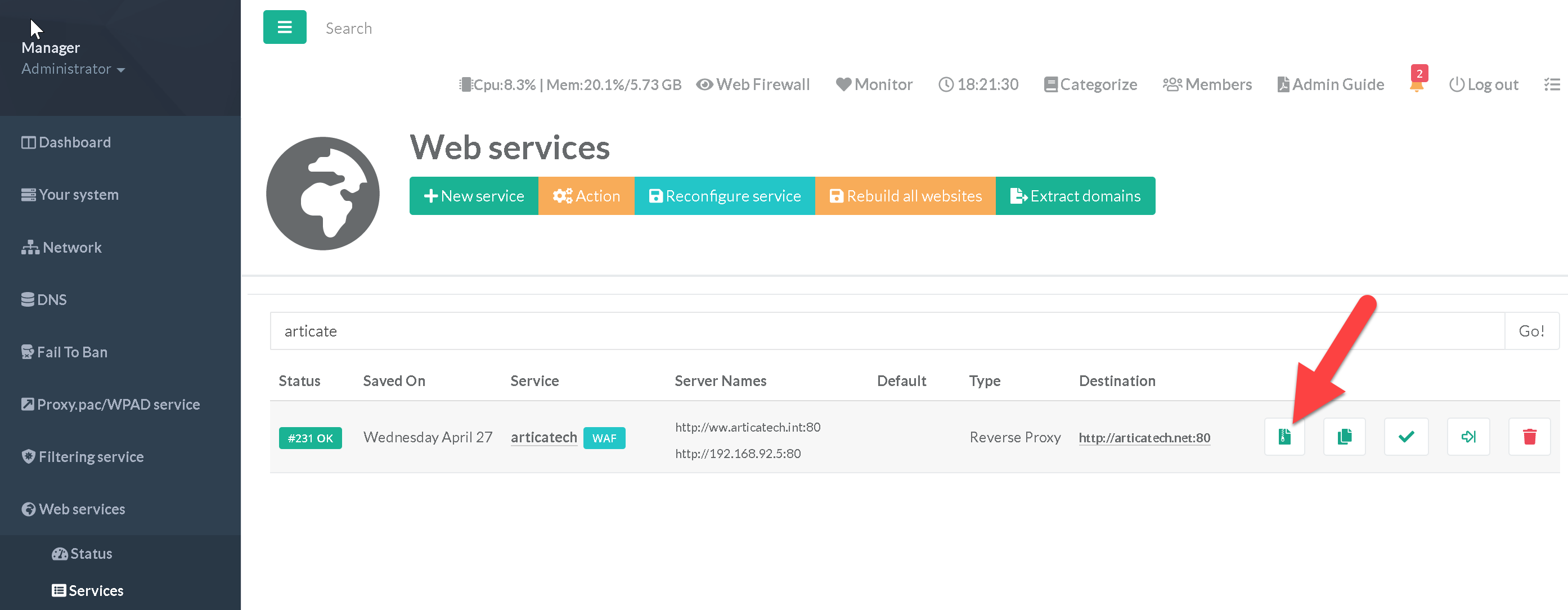 On the Web services section, click on the “Zip” icon on the right column.