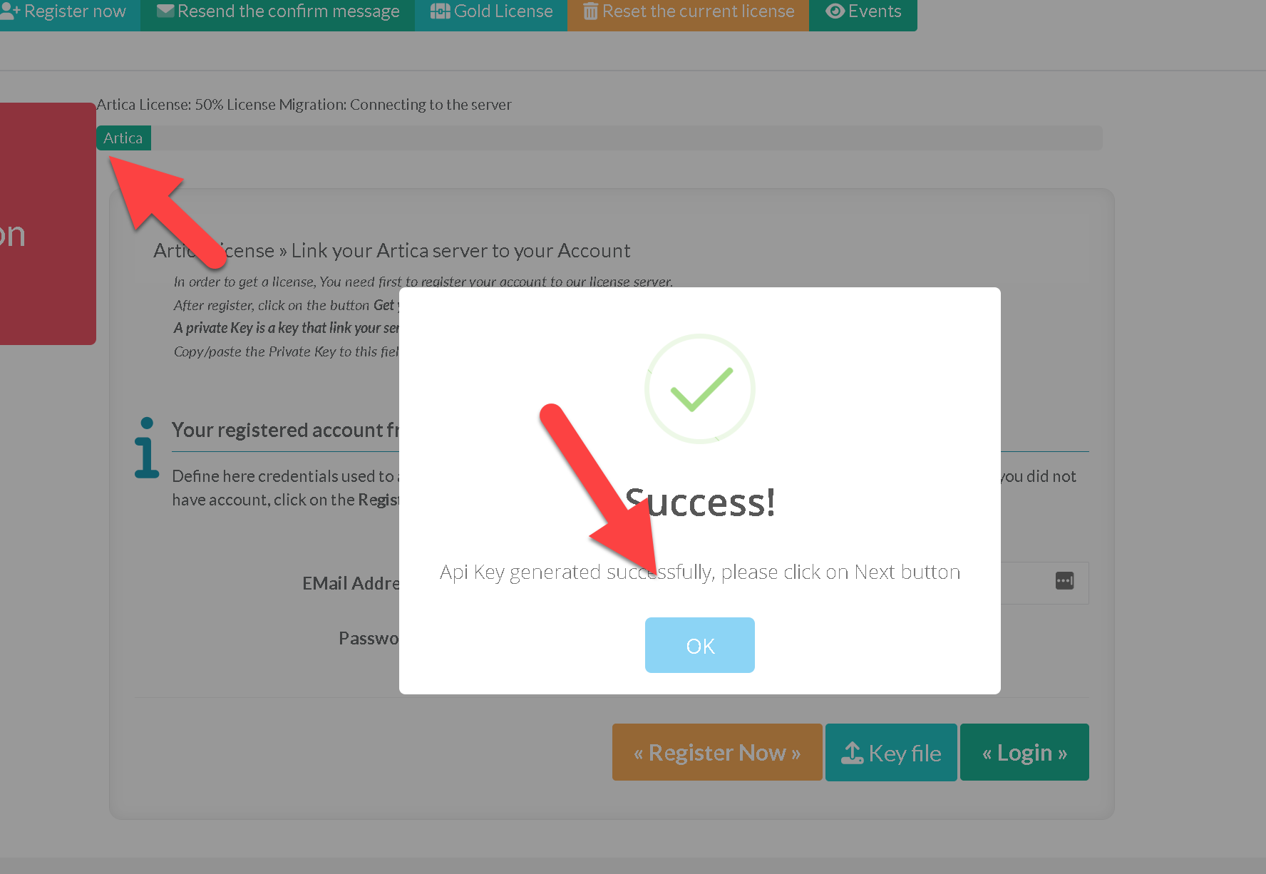 After clicking on the login, the Artica server check you account on the licensing server and link your Artica server to the license system.