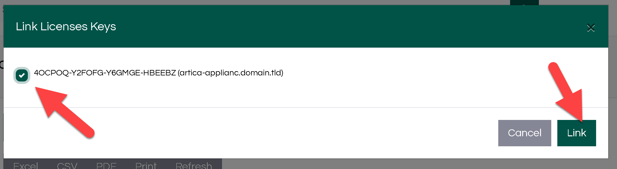 A new window will appear offering you Artica server(s) that can be assigned to this Entreprise license.