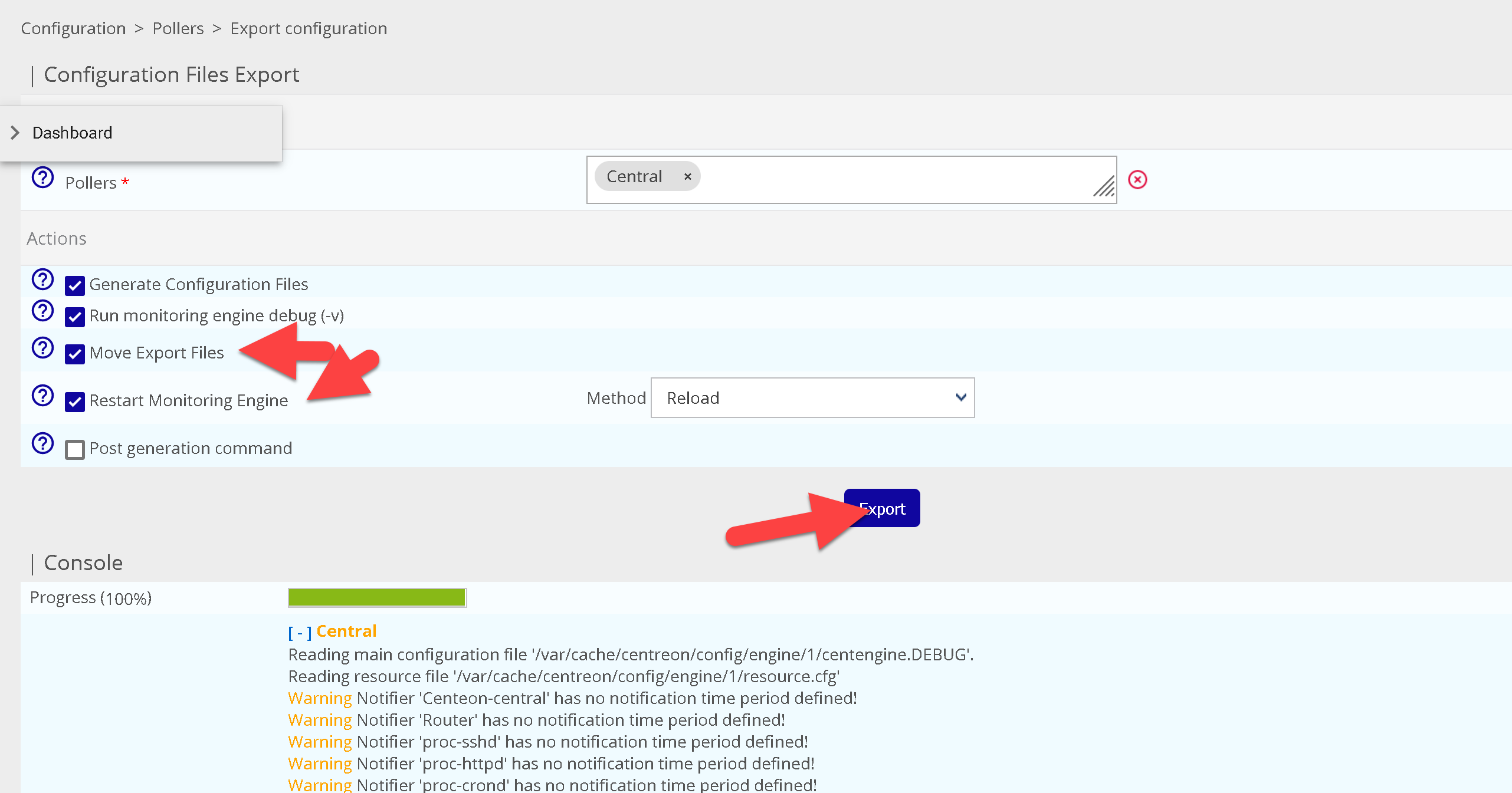 On creation/deletion/change of objects via the configuration interface, the changes performed are not applied automatically to the monitoring engine.