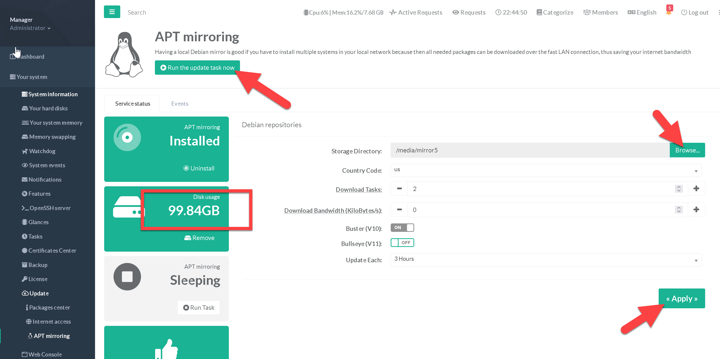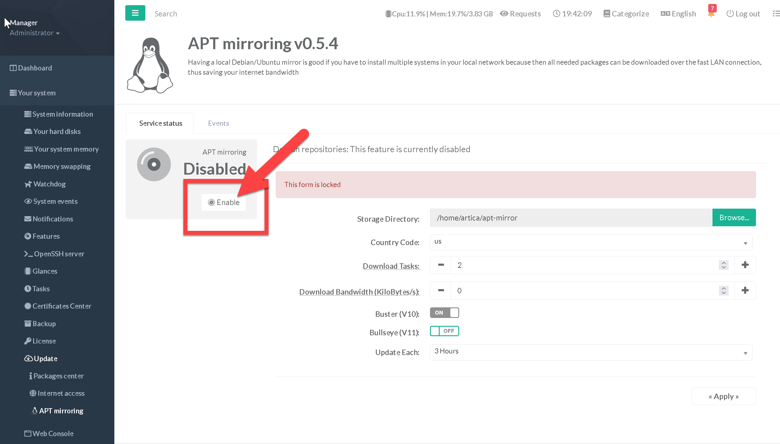 When using multiple Artica servers and also Debian systems, it is very interesting to build a local repository mirror on your local network, delegate an edge server for this job and configure the internal clients to fetch software from its cache mirror. This feature is available on Artica 4.30 Service Pack Instable 905 or Artica v4.40