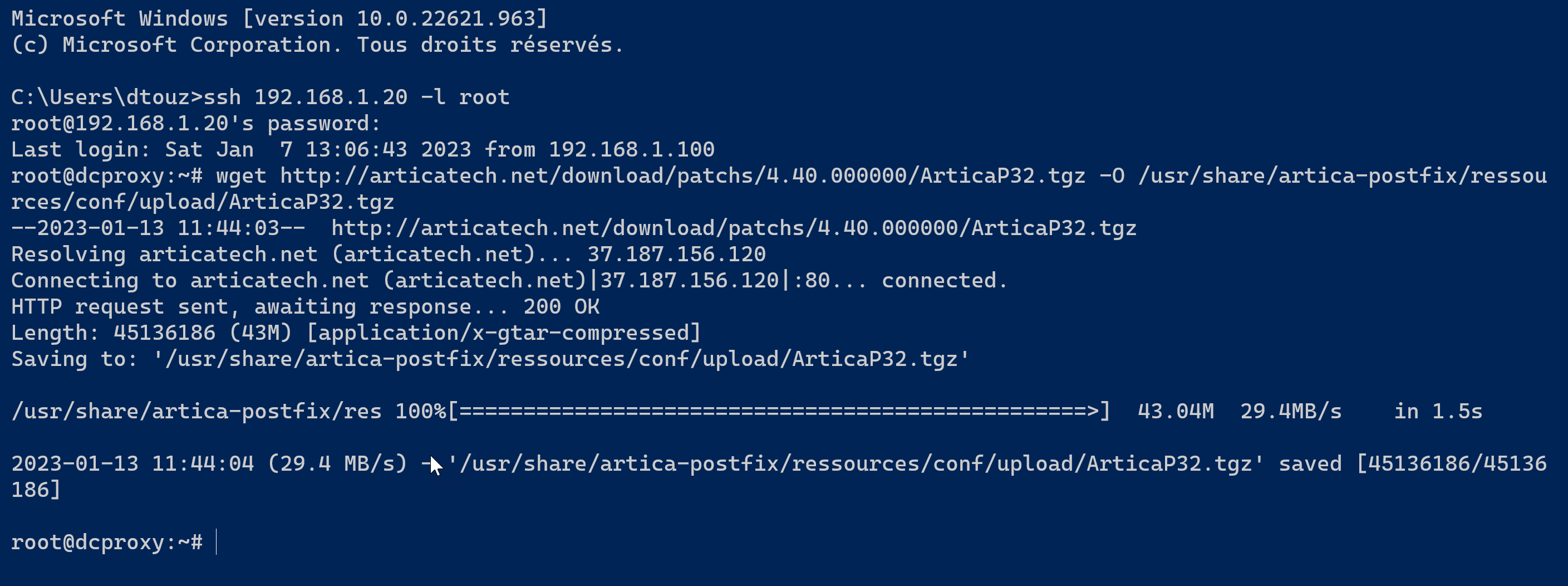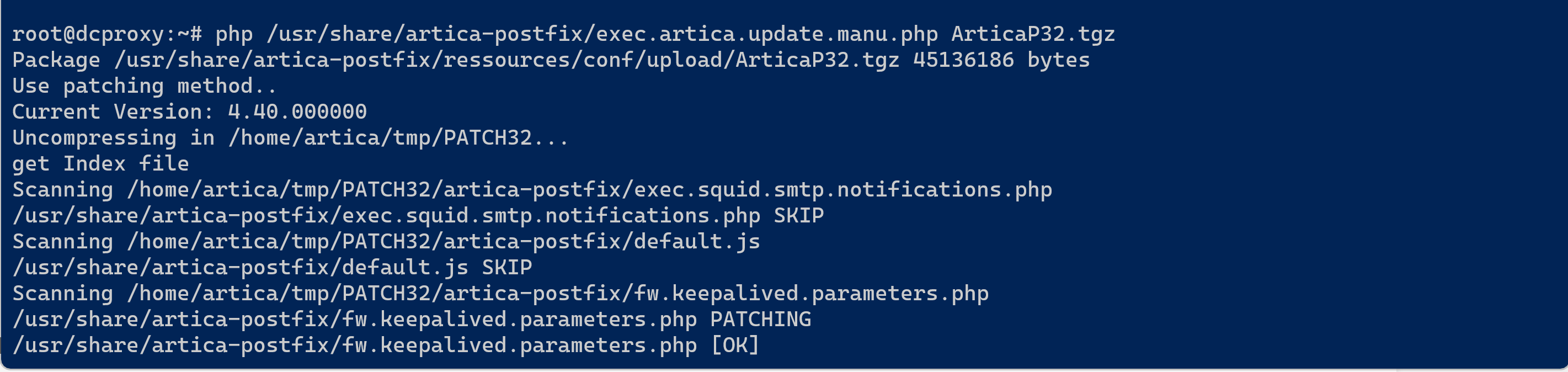 wget http://articatech.net/download/patchs/4.40.000000/ArticaP32.tgz -O /usr/share/artica-postfix/ressources/conf/upload/ArticaP32.tgz