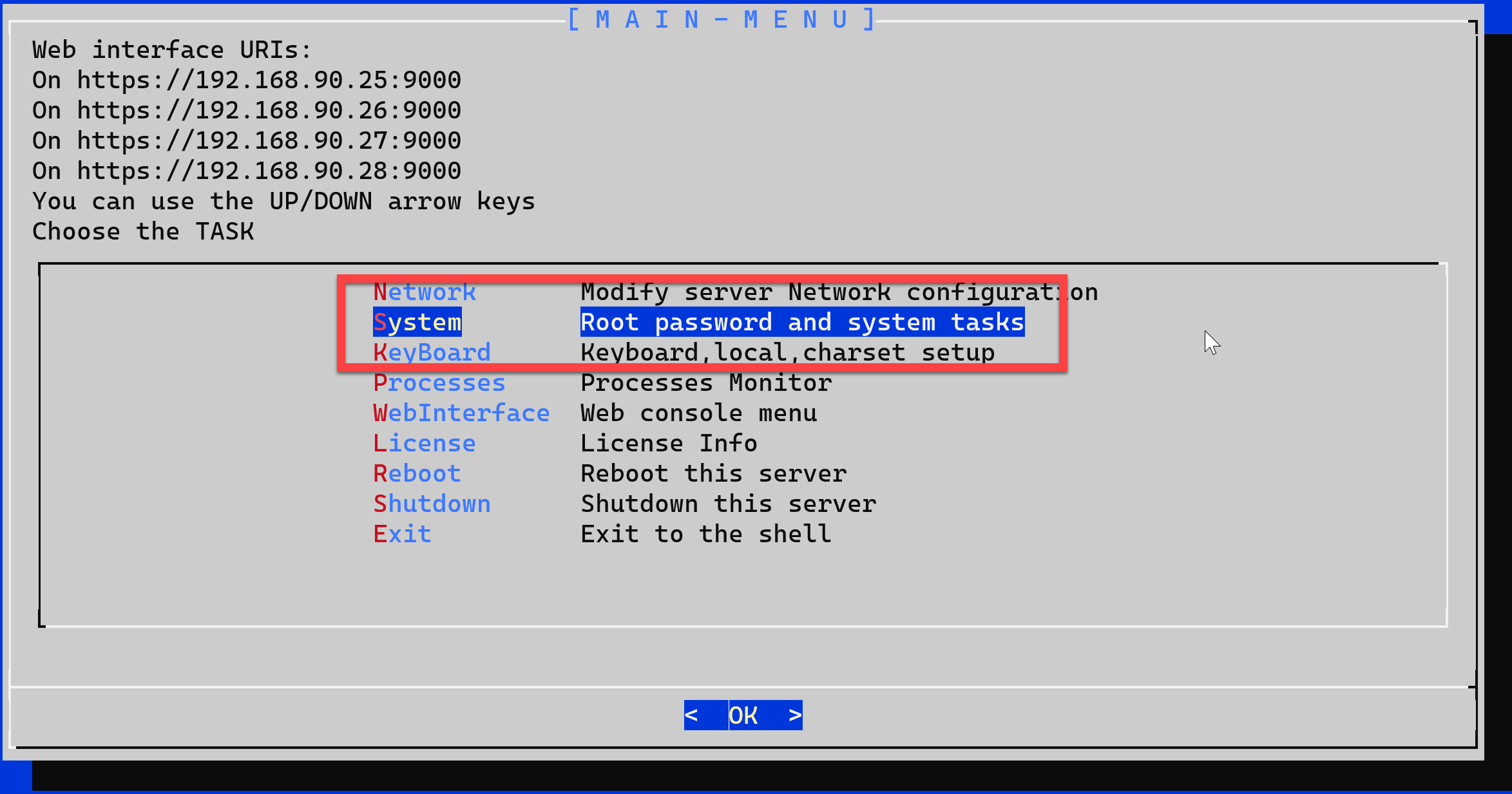 You can access to the Unix console directly on the box or by launch the script /usr/share/artica-postfix/logon.system.sh or /usr/share/artica-postfix/logon.sh if you using SSH