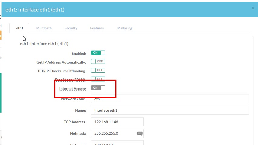 By defaut the Internet checking is disabled, that's why you see the option in disaled mode inside the network interface settings.