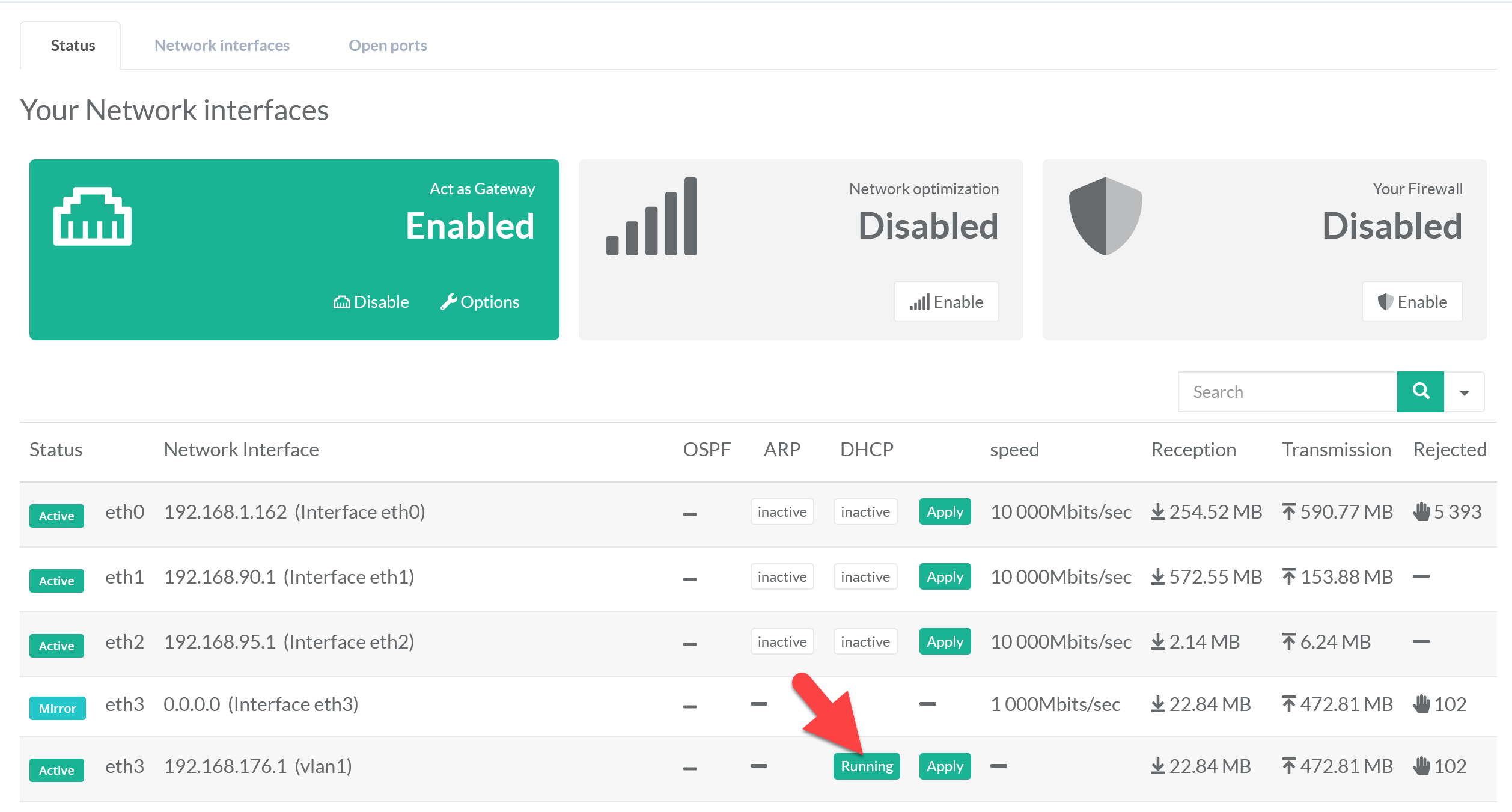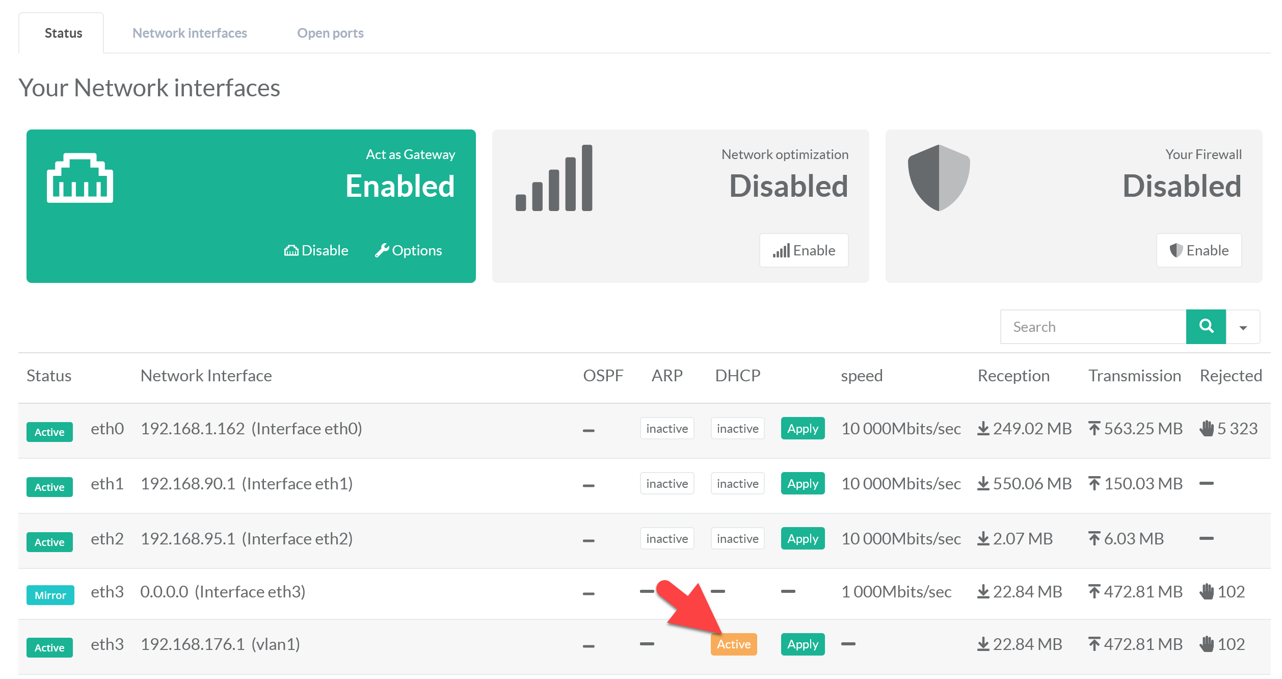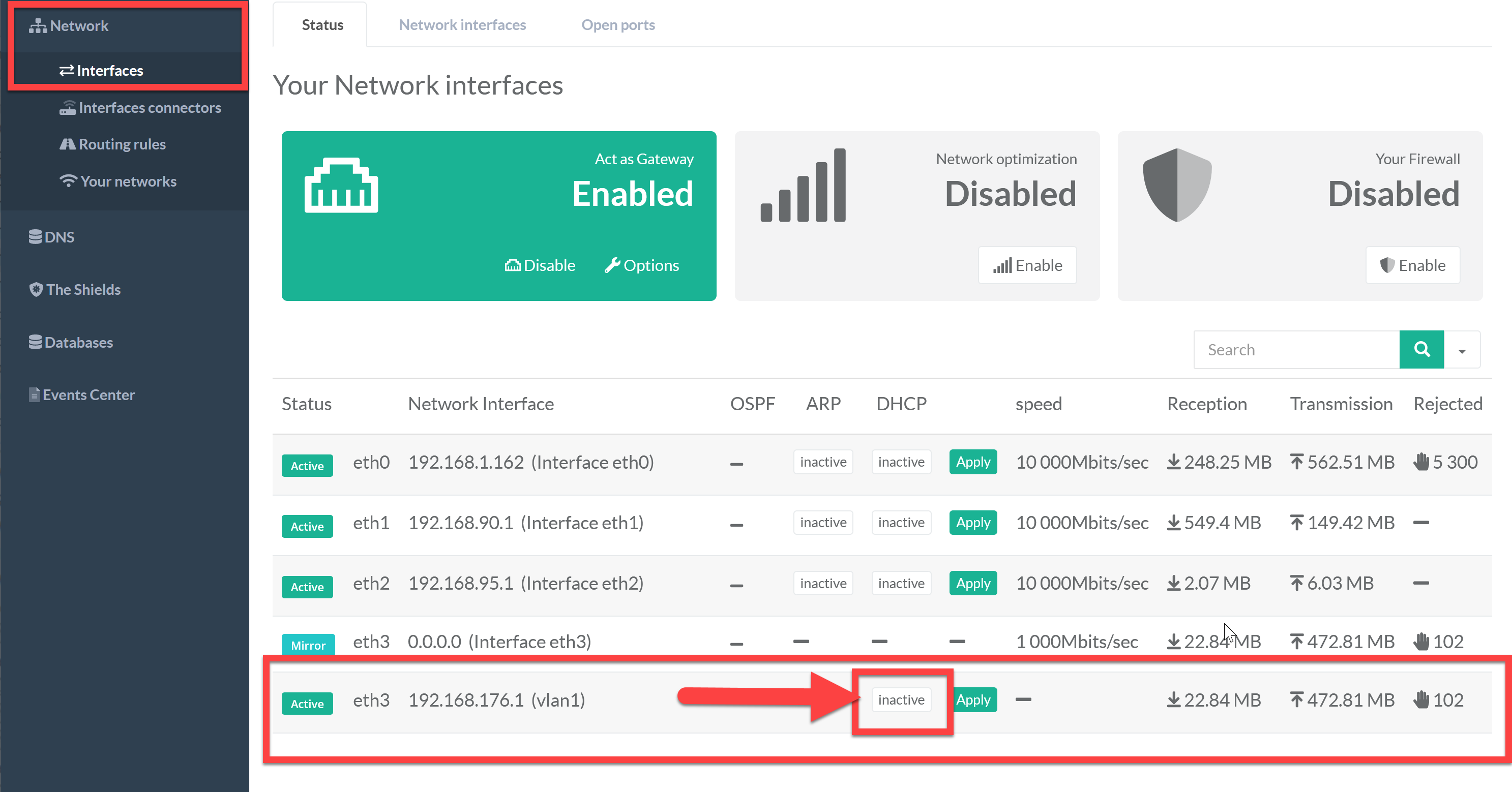In the DHCP column, you can see that the status is “Inactive”. Inactive status means there is no DHCP service associated for this Interface.