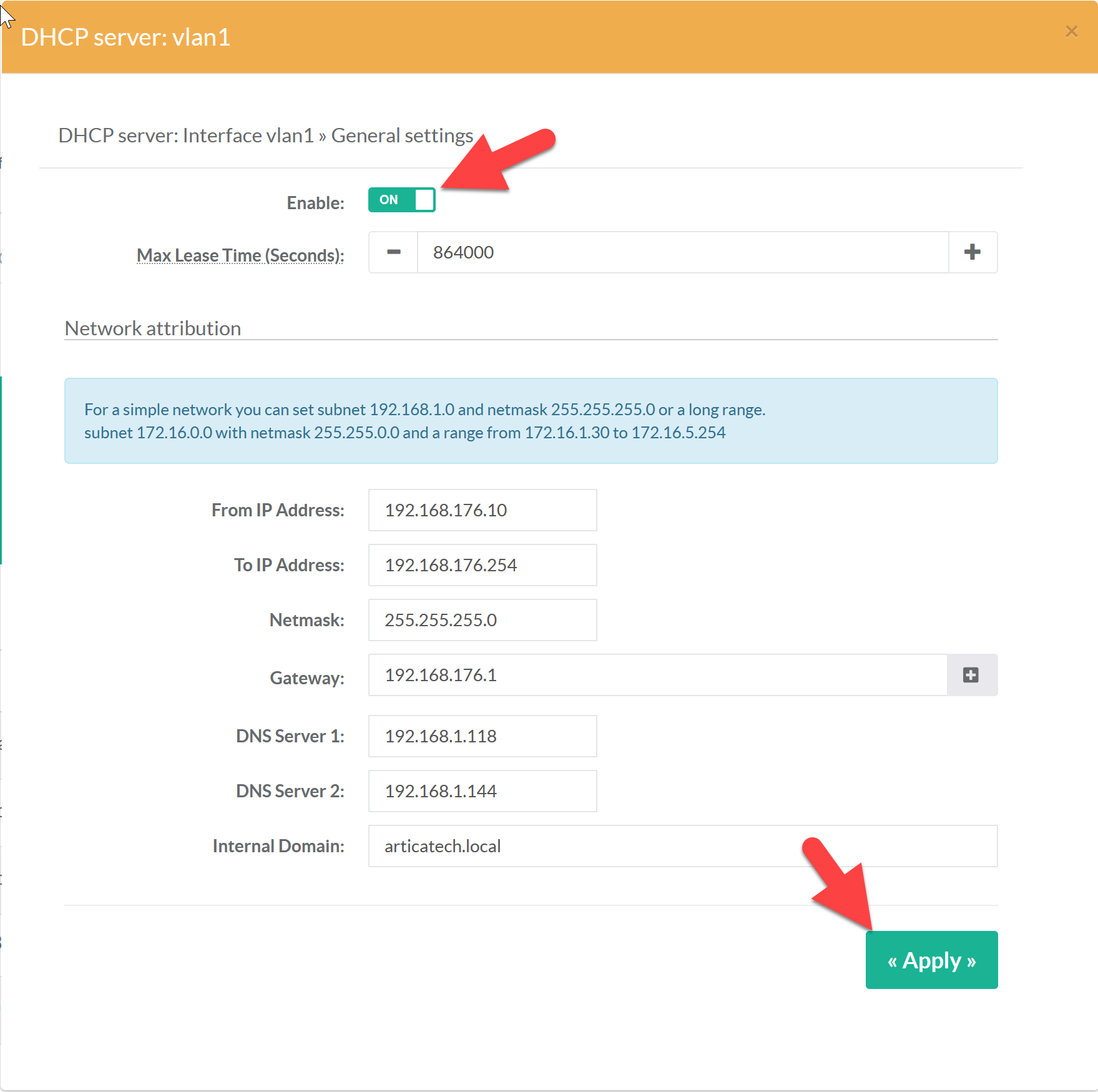Artica supports the possibility of creating a DHCP service per network interface. With version 4.30 Service Pack 431 this feature has been added with VLAN sub-interfaces that you can associate with the main network interfaces.