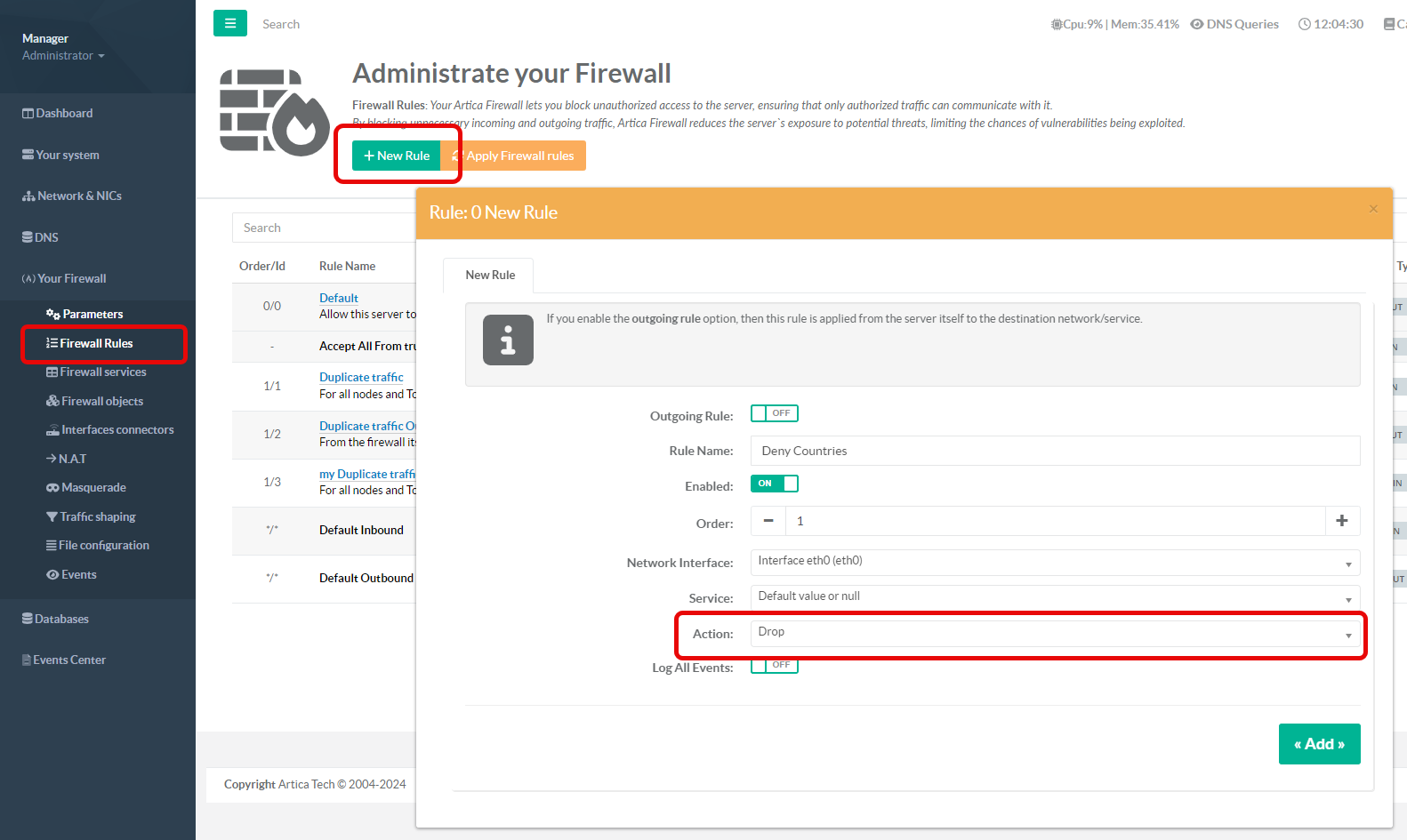 Blocking access based on source country with Artica Firewall helps improve security, regulatory compliance, and resource efficiency, making it a valuable tool for organizations aiming to reduce unwanted traffic or risks from specific regions.
