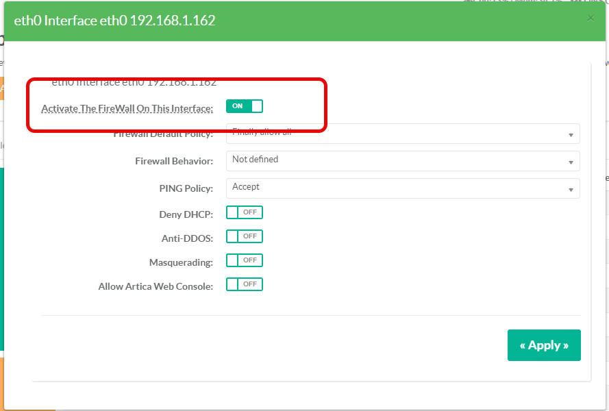 Allow Artica Web console: Create automatically an allow rule for the Artica Web console port.