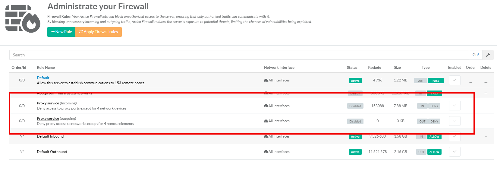 If you have the Proxy service installed, you can view two proxy rules.