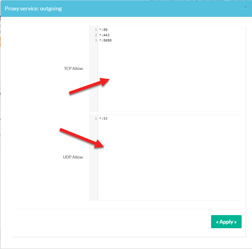 By default, the proxy is able to consult all addresses on port 53 in UDP and all addresses on port 80 and 443.