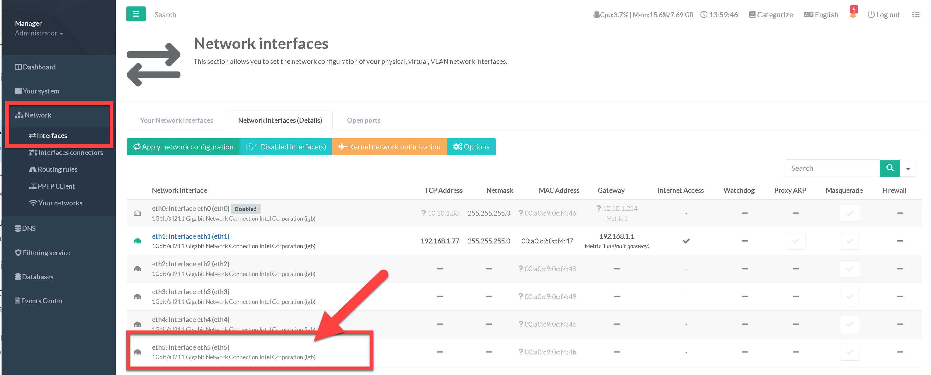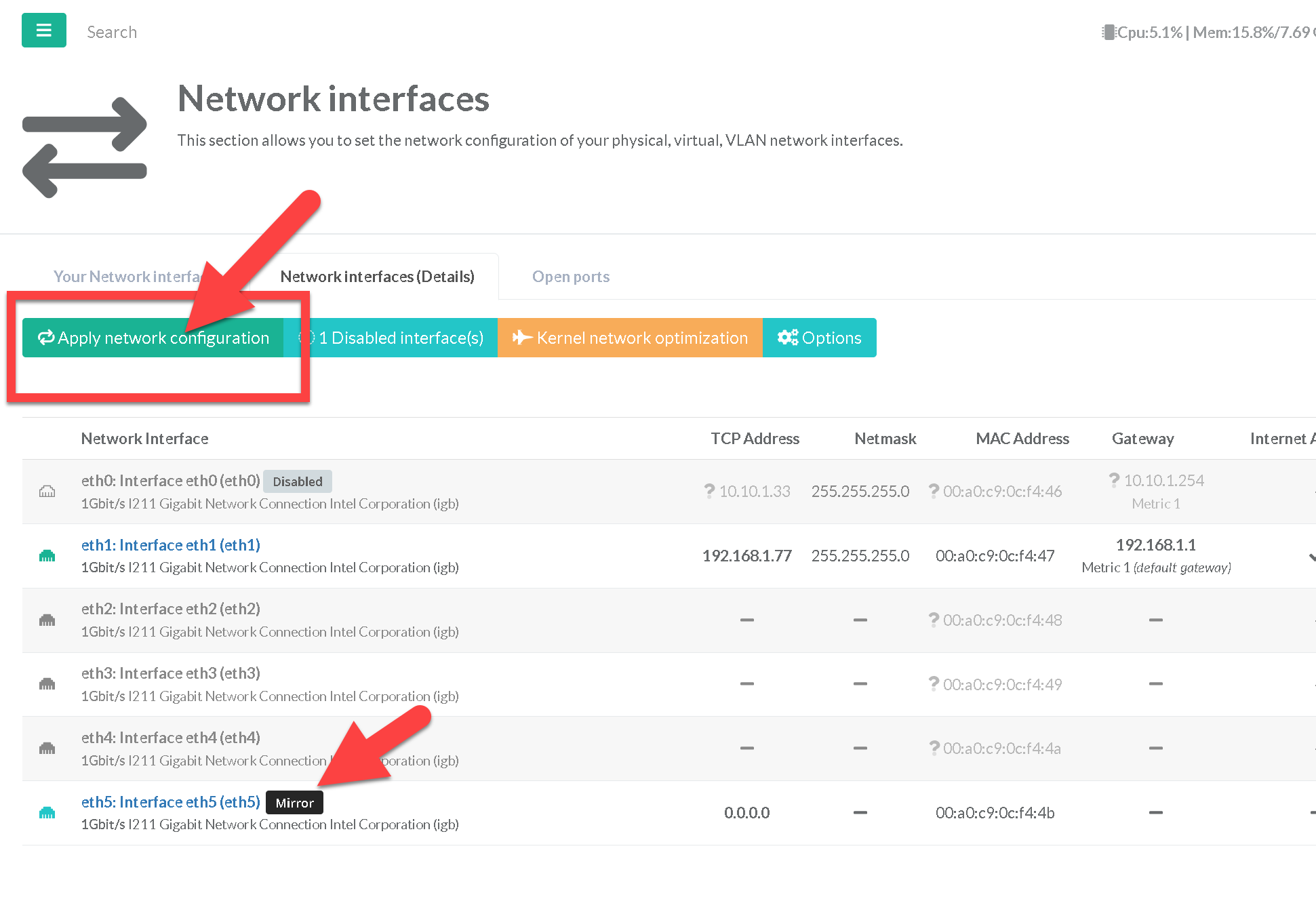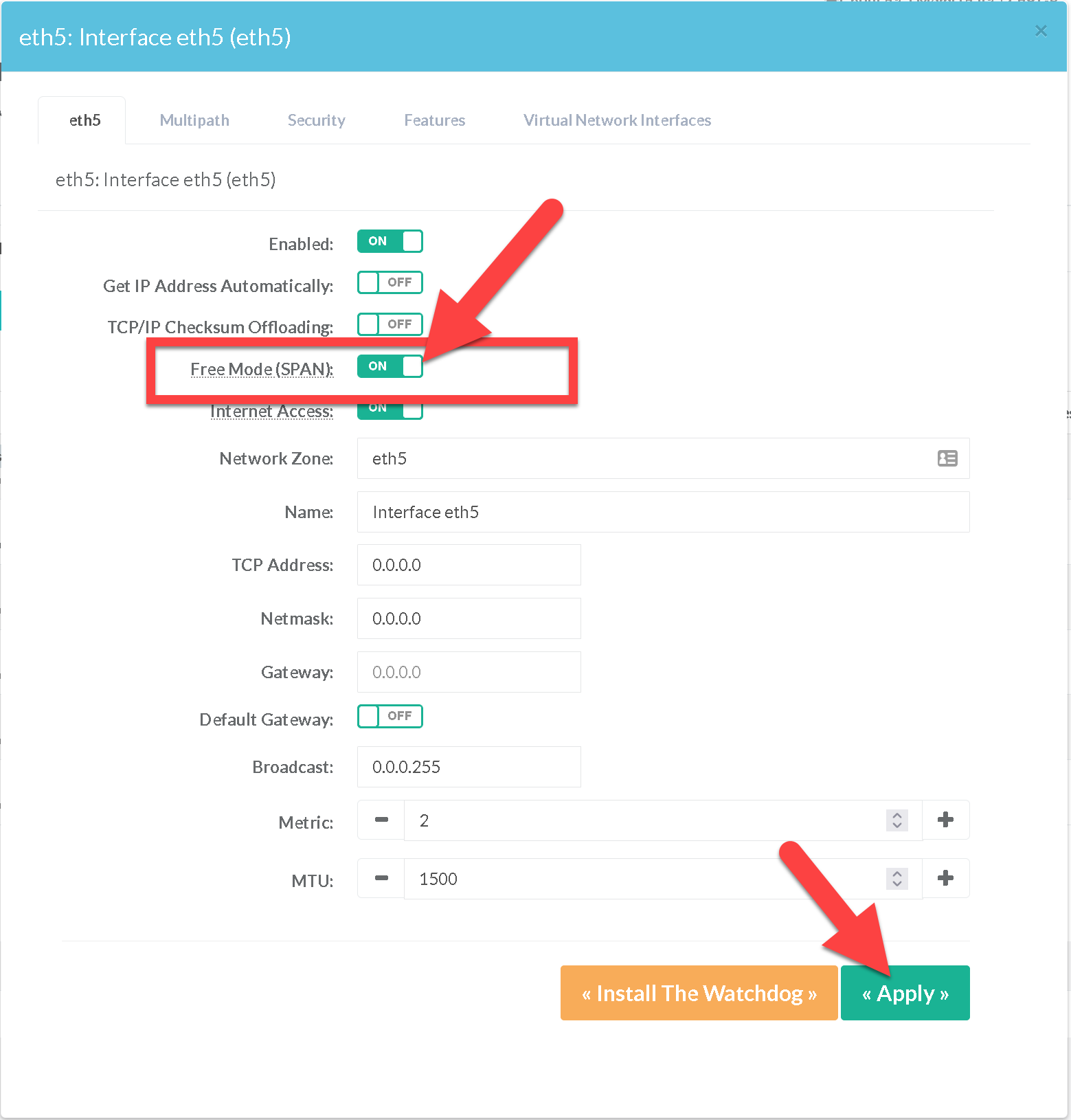 Choose the Monitored Network interface