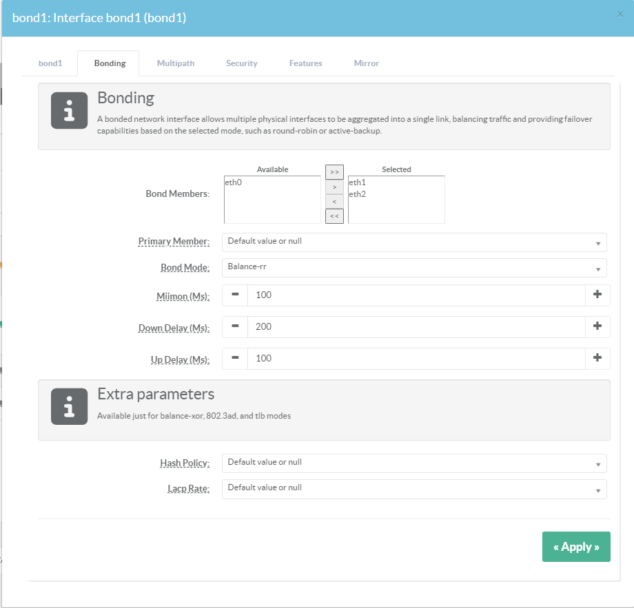 Bond Members: Specifies the network interfaces that will be linked to the bond primary interface.