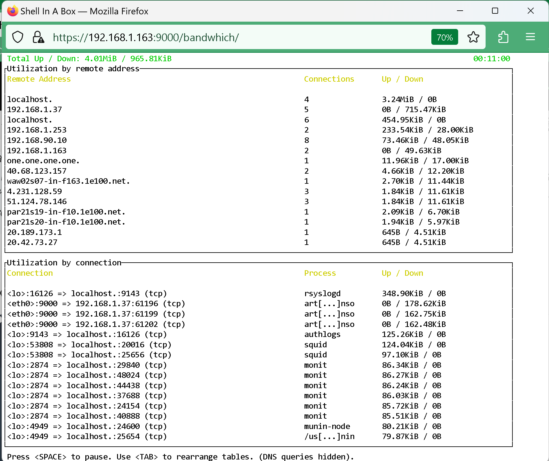 The Real-time network monitor provides a real-time view of your system's network usage.