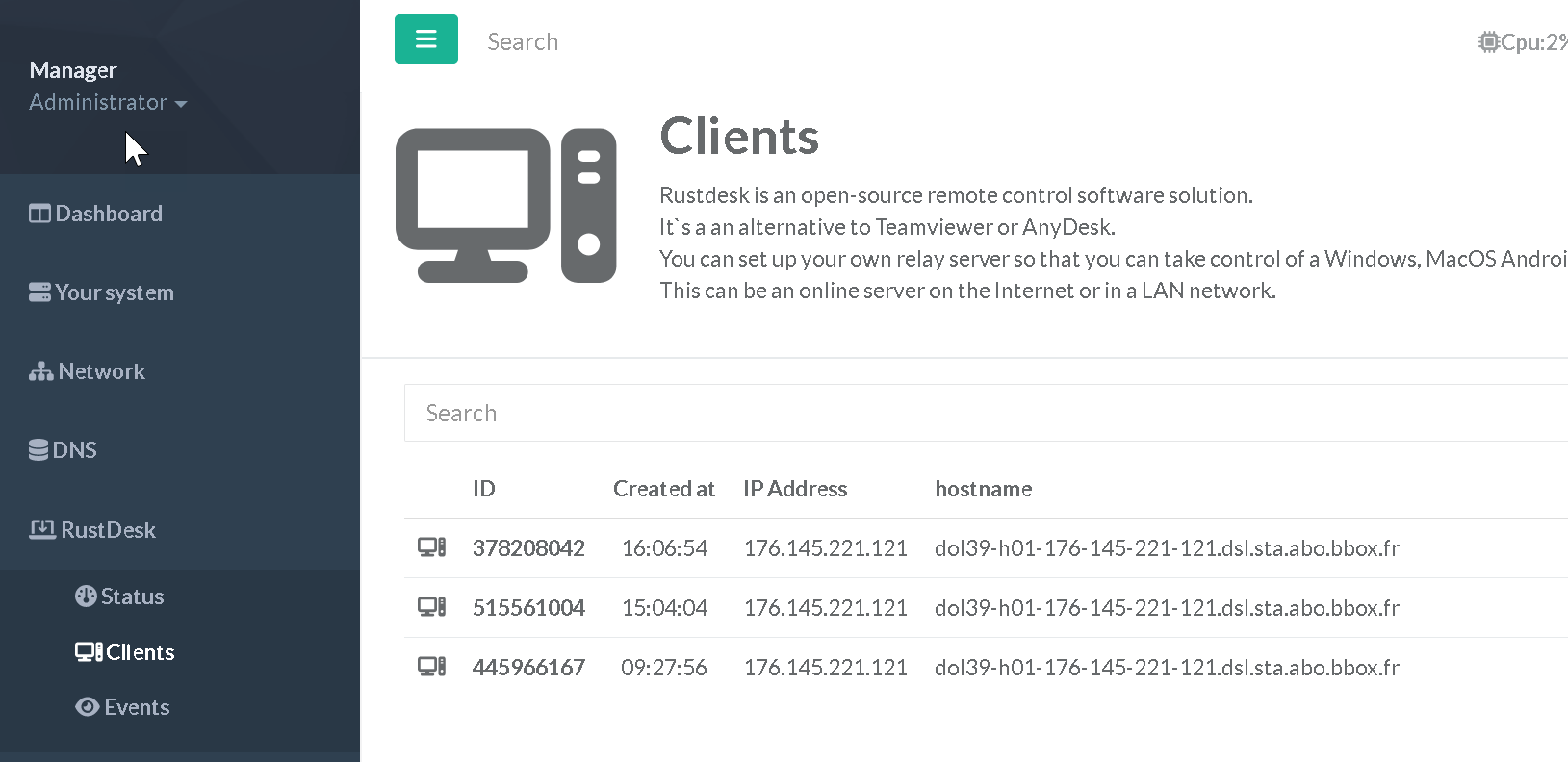 When remote clients connects to your RustDesk gateway, they register with the system. You can view the clients who have been registered on your gateway