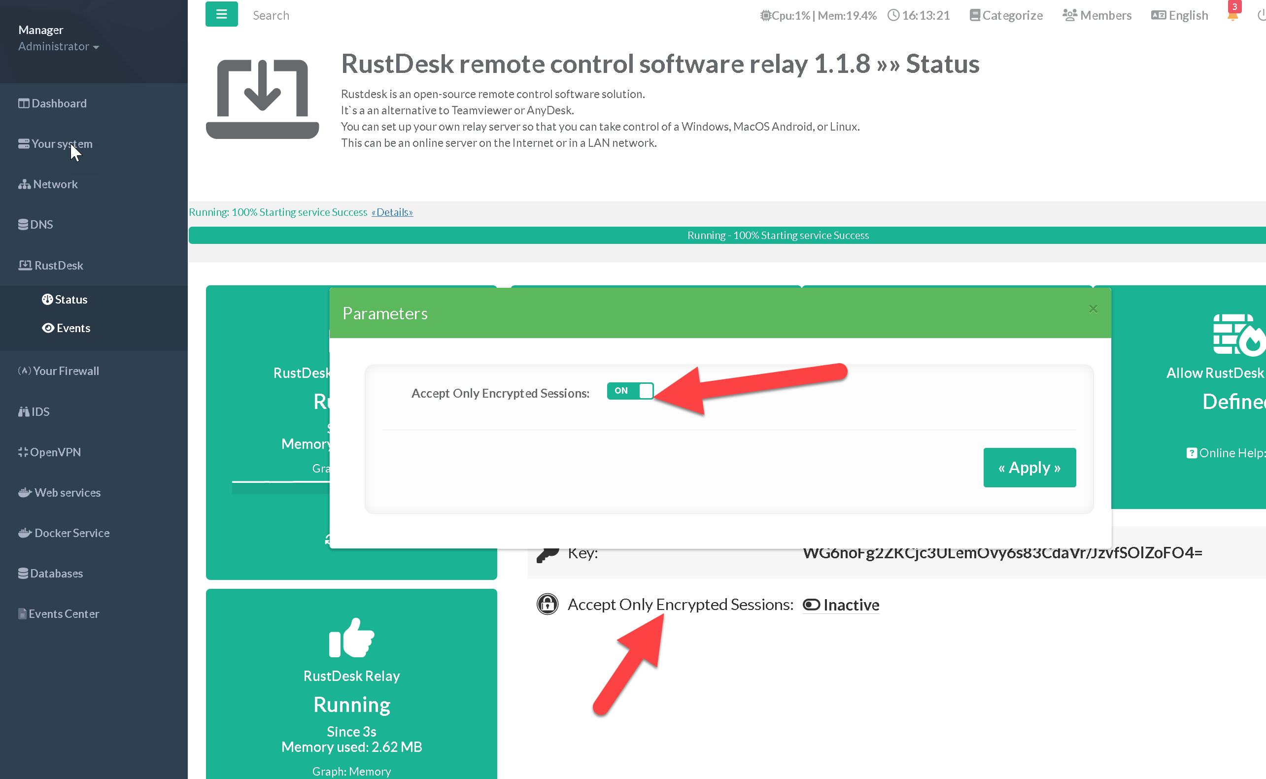 By default, the RustDesk service allows unencrypted communications, if you want to force clients to always use encrypted streams using your public key.