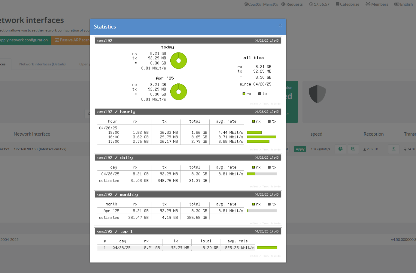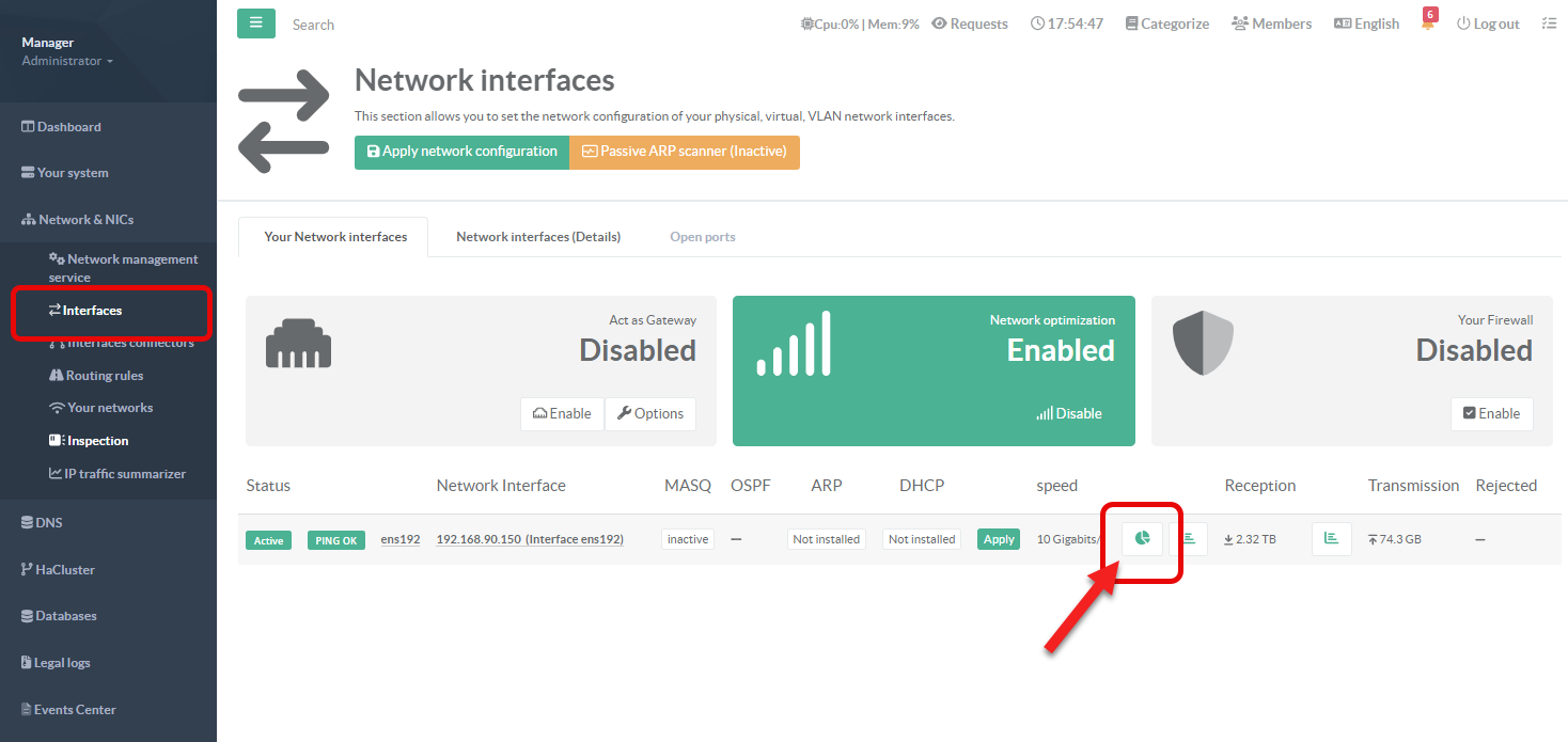 Statistics are generated per interface and are available in the network interfaces status section.*