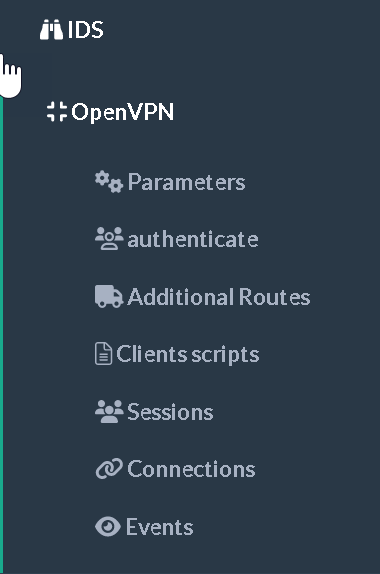 Once installed, a new left menu OpenVPN is available.