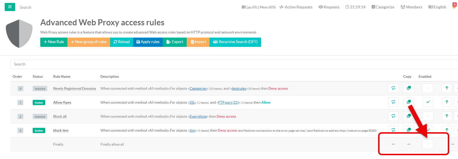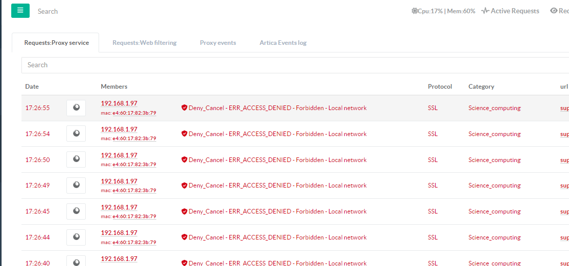 You are unable to access the Internet through the proxy and you notice in real-time events ERR_ACCESS_DENIED - Forbidden - Local network