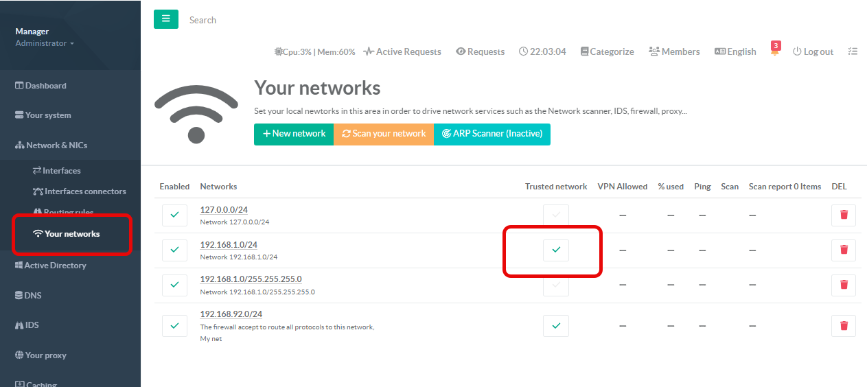 Network & Nics > Your Networks
