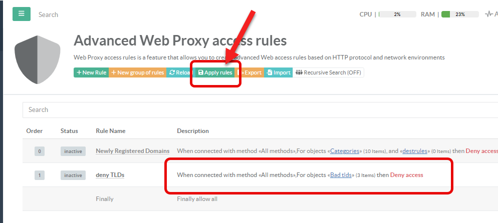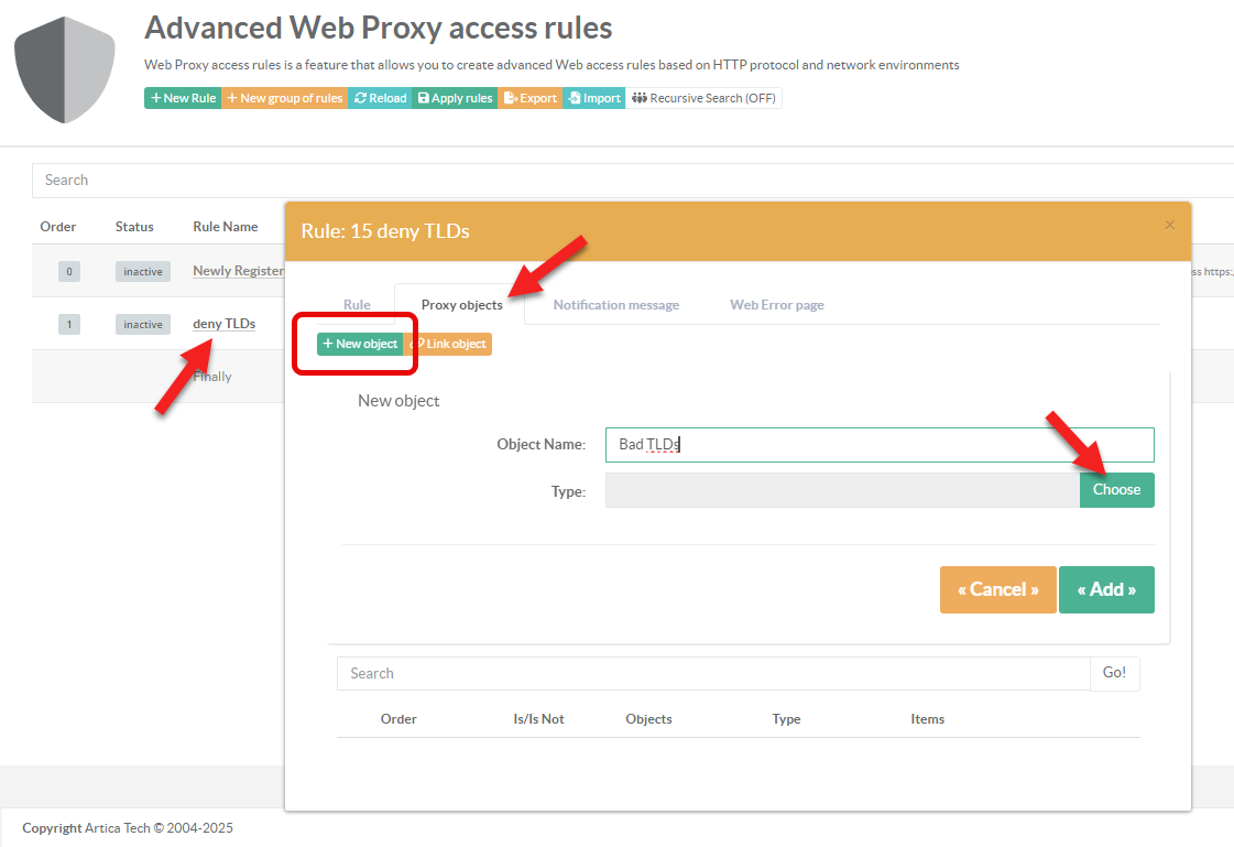 .xyz,.xxx, and.zipusing Artica Proxy ACLs offers several key benefits, particularly in enterprise or tightly controlled environments.These TLDs are often associated with malicious activities like phishing, malware distribution, and spam. By blocking them, you significantly reduce exposure to untrusted or suspicious domains.