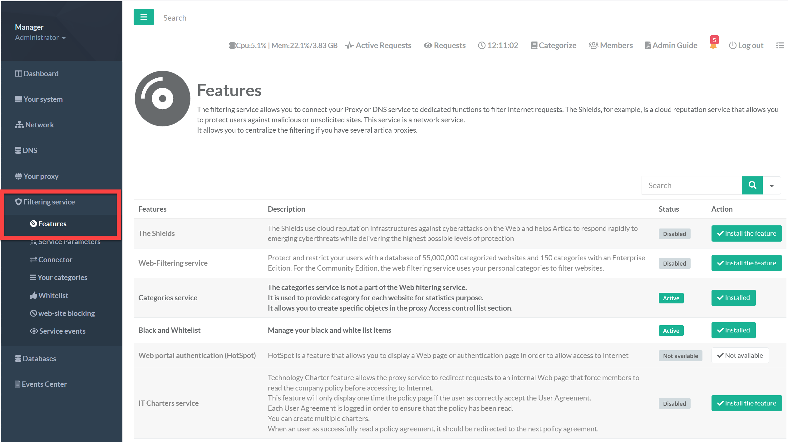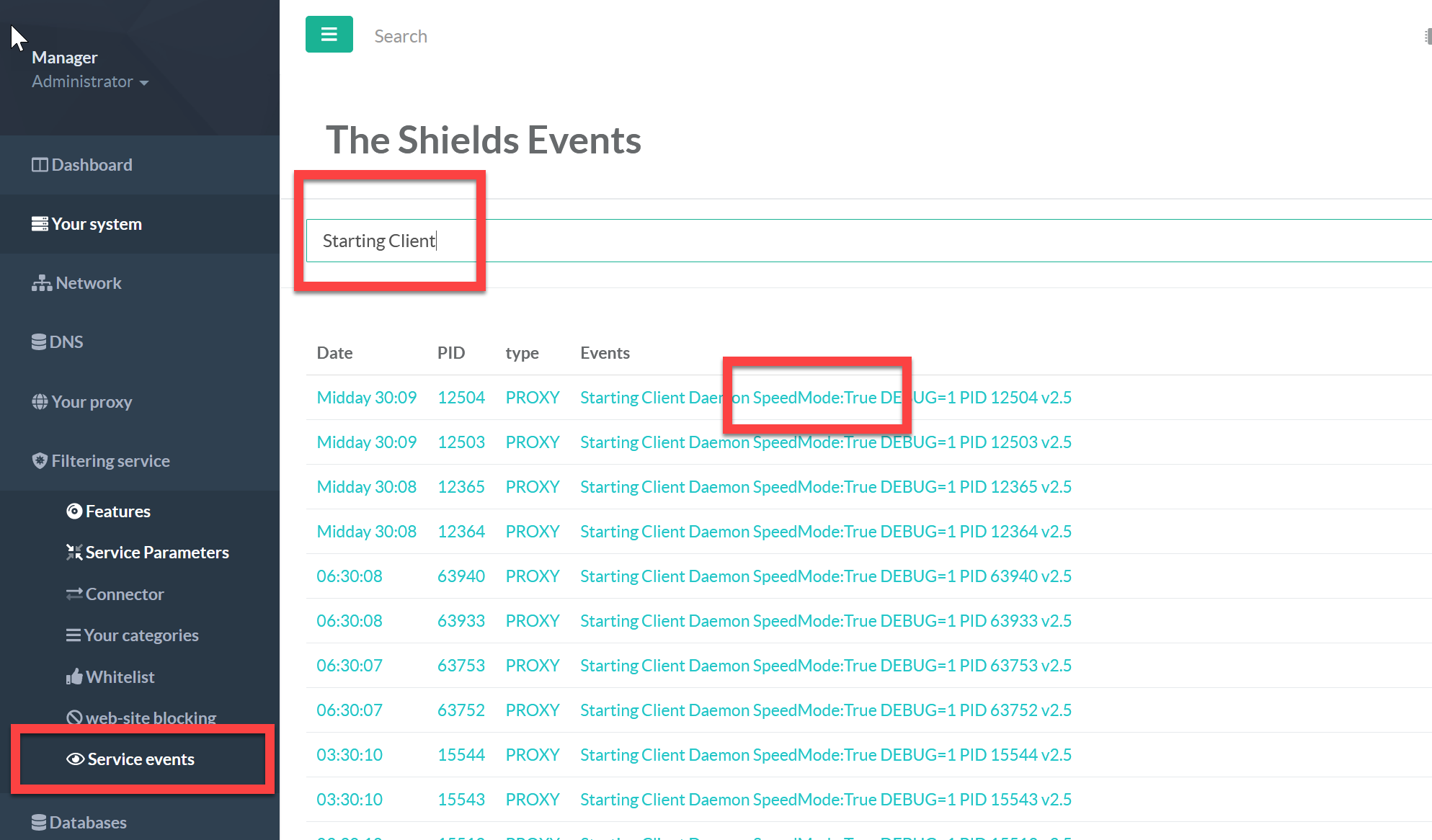 ensure that “The Shields”, “Web-filtering service”, “Web Portal authentication”, “IT Charters service” are disabled.